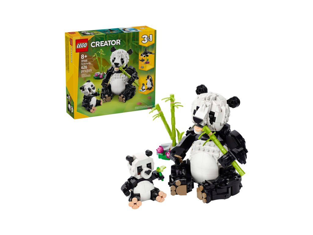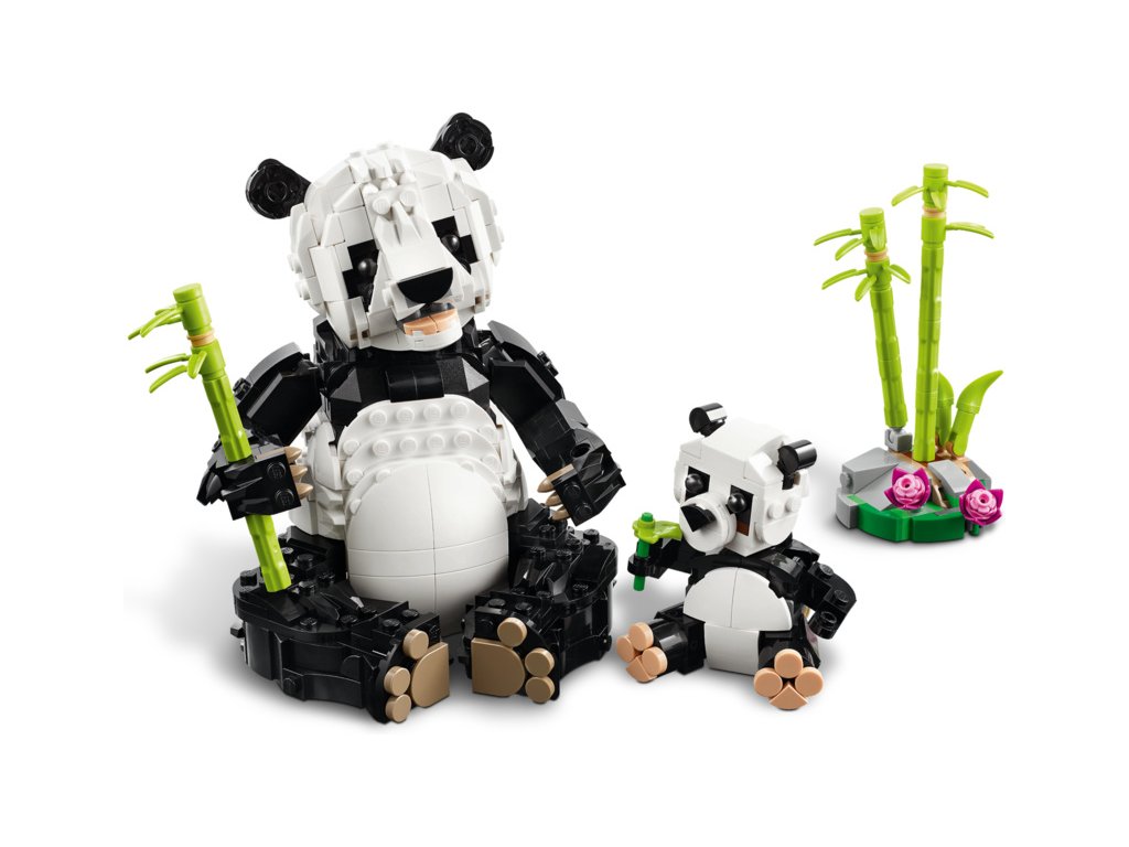 Děti od 8 let se podělí o lásku a zábavu se 3 zvířecími rodinkami se stavebnicí Divoká zvířata: Pandí rodinka (31165). Model obsahuje dospělou pandu s pohyblivou tlamou, hlavou, krkem a tlapkami a roztomilé pandí mládě s bambusovým výhonkem, na kterém si může pochutnat.