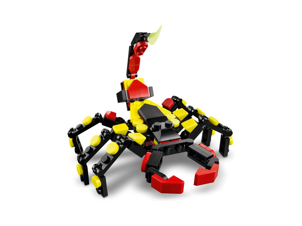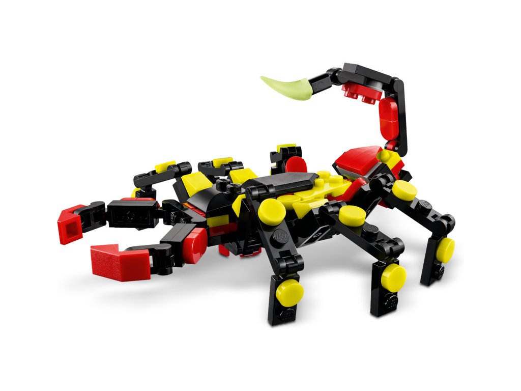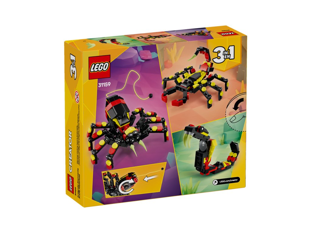 Milovníky zajímavých zvířat čekají hned 3 různé možnosti stavění ze stejného balení kostek: pohyblivý pavouk LEGO s prodloužitelnou pavučinou, pohyblivá figurka škorpiona nebo majestátní pohyblivý had. Všechny 3 figurky zvířátek v této stavebnici na přestavování představují kreativní a zábavné dárky pro děti.