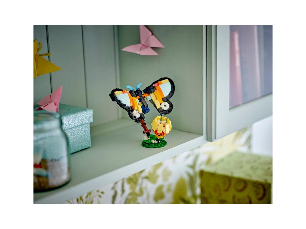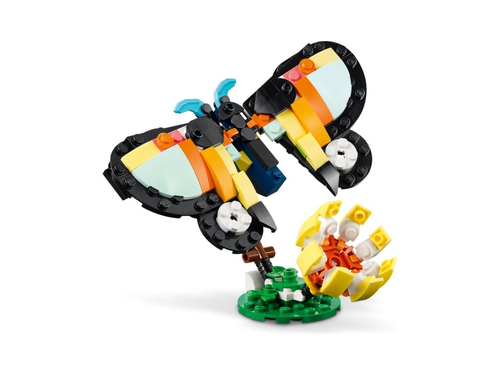 Děti si můžou postavit hned 3 různé LEGO modely ze stejných kostek: pohyblivého tukana s plátkem melounu, který lze umístit do jeho zobáku, pestrobarevného motýla s pohyblivými křídly poletujícího nad trávou s květinou a tropickou rybu s pohyblivými ploutvemi, která se otáčí na podstavci o celých 360 stupňů.