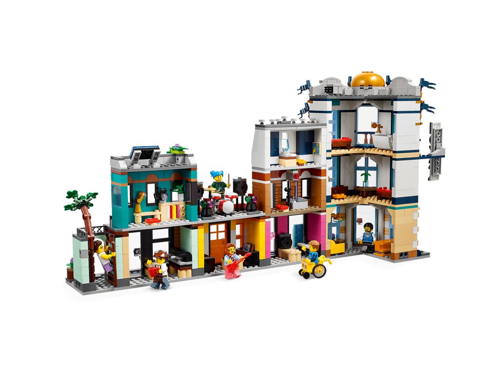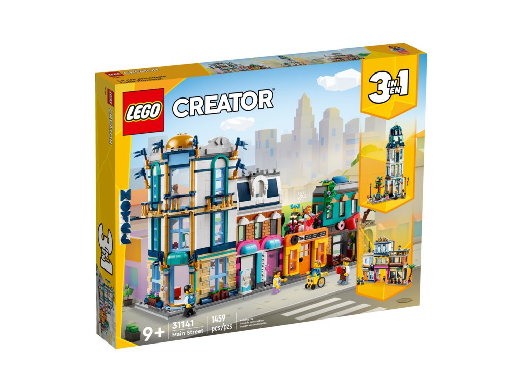 Malí stavitelé si s touto herní stavebnicí LEGO Creator 3 v 1 užijí stavění 3 různých modelů města. Mohou postavit Hlavní ulici se 4 budovami, přestavět ji na 4patrový secesní obytný dům s parkem nebo na ulici s bránou na trh, fotoateliérem a květinářstvím. Součástí každé stavebnice je také 6 minifigurek pro hraní rolí. Posbírejte 3 sady a můžete spojit 3 jednotlivé modely k vytvoření jedné velké městské scény.