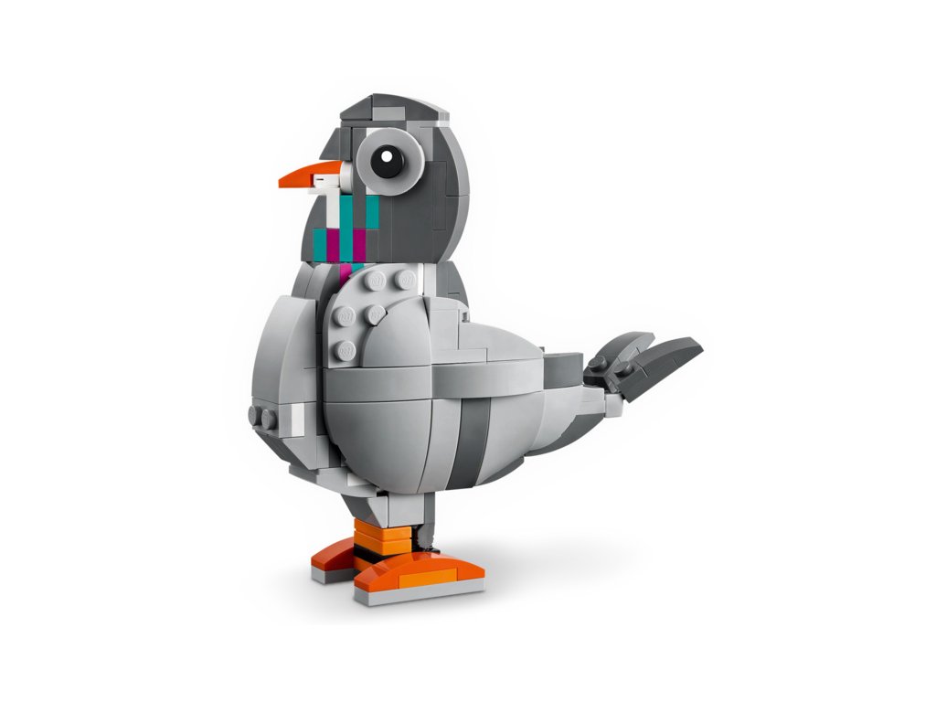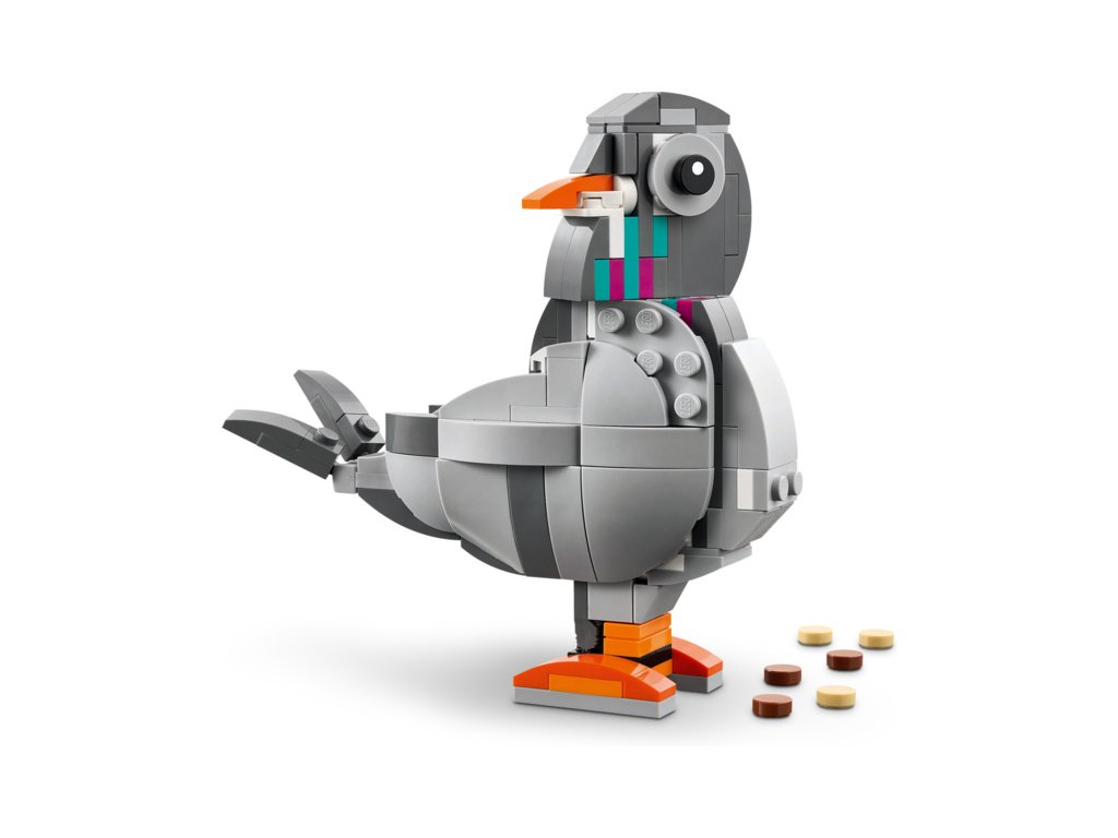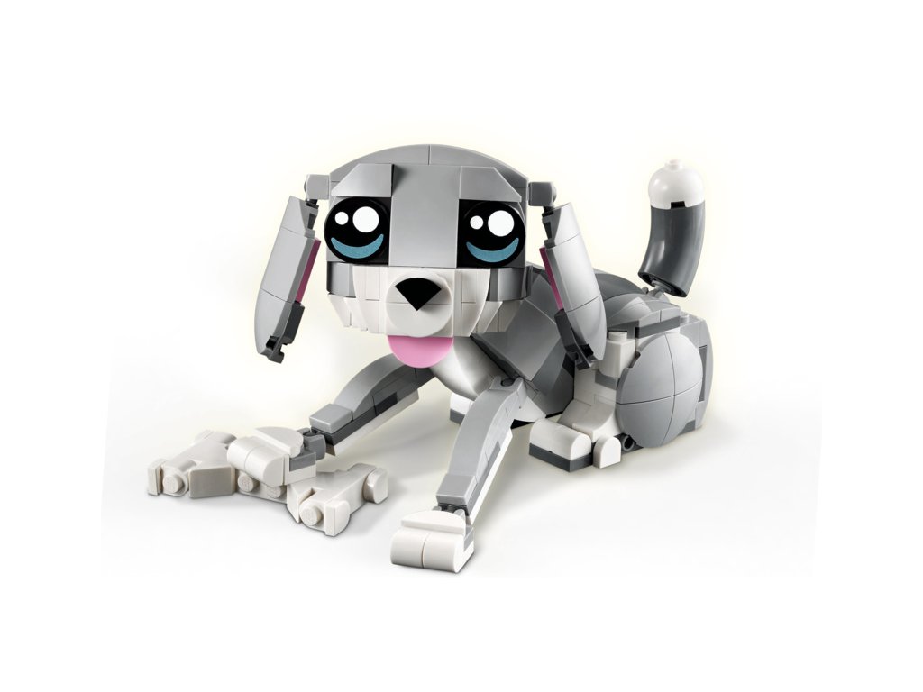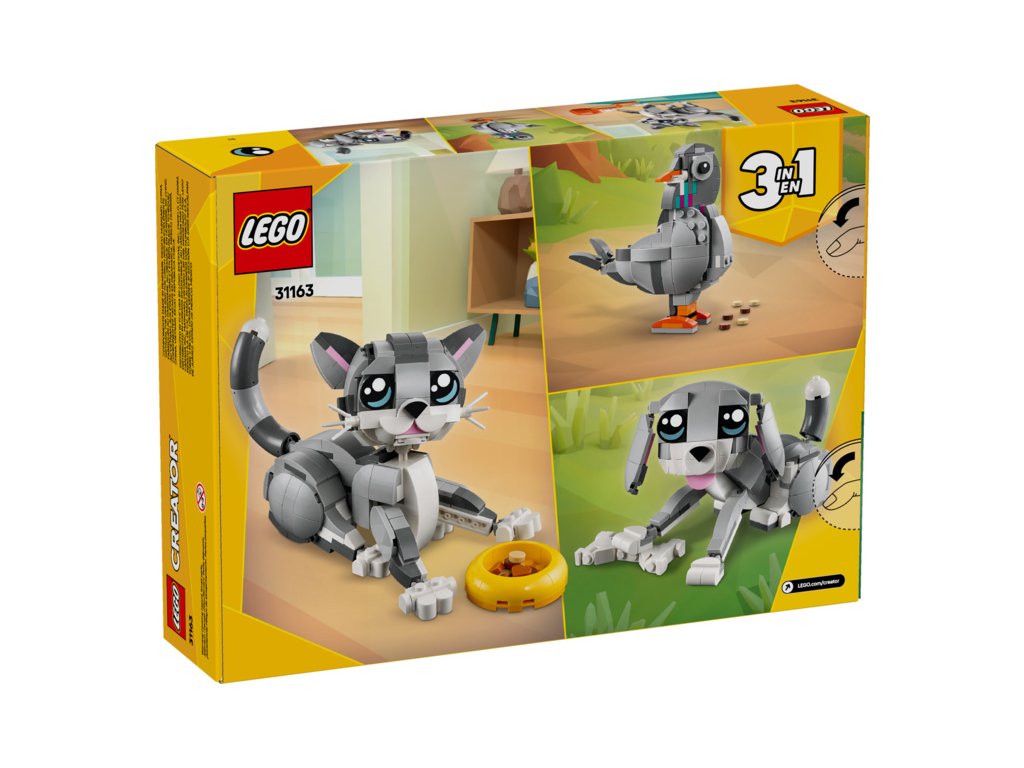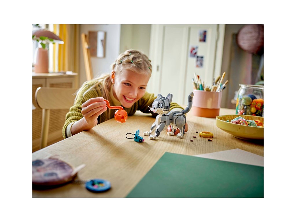 Holky a kluci si s touto stavebnicí LEGO postaví hned 3 různé modely zvířátek ze stejných kostek: pohyblivou kočku, která může sedět, stát a skákat, pohyblivého roztomilého pejska s kostí a model holuba s drobky. Díky těmto 3 modelům se jedná o skvělý dárek LEGO, který si děti můžou vystavit a užít si s ním nápadité hraní.