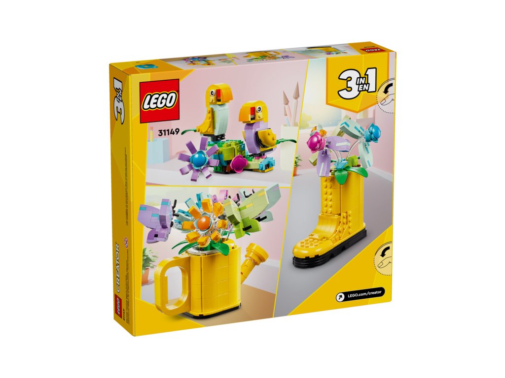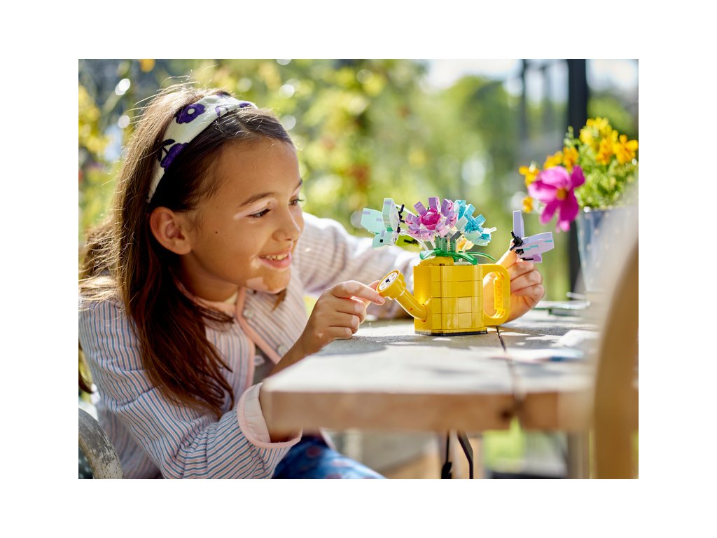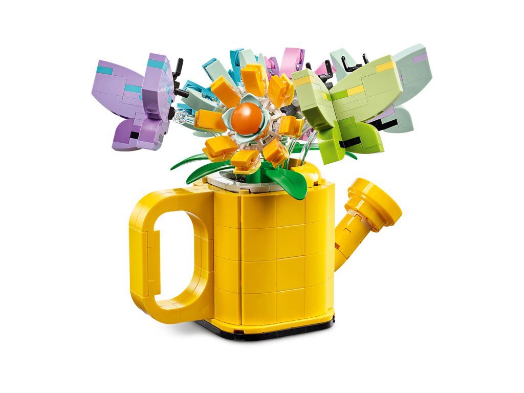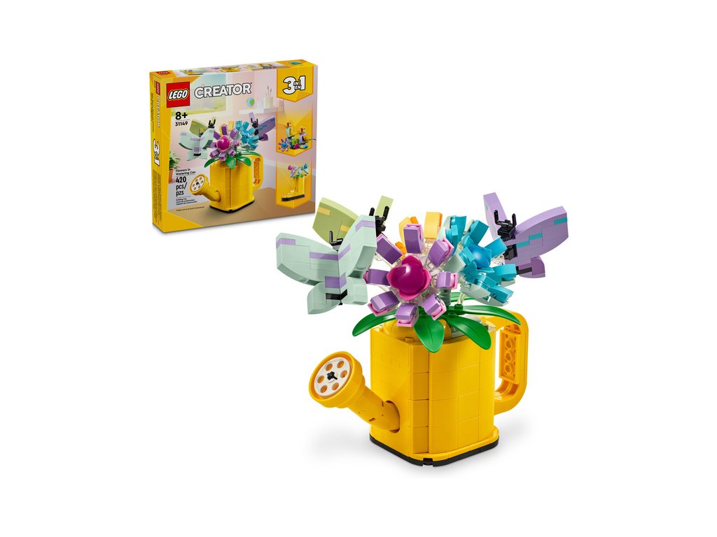 Se stavebnicí LEGO® Creator 3 v 1 (31149) Květiny v konvi na děti čekají hned 3 tematické modely inspirované přírodou, které si poskládají a po hraní vystaví. Postavte si z kostek žlutou konev s držadlem a hubicí. Uvnitř se tyčí 3 květiny s pohyblivými okvětními lístky a 3 motýli připevnění na průhledných tyčinkách, kteří vypadají, jako by létali.