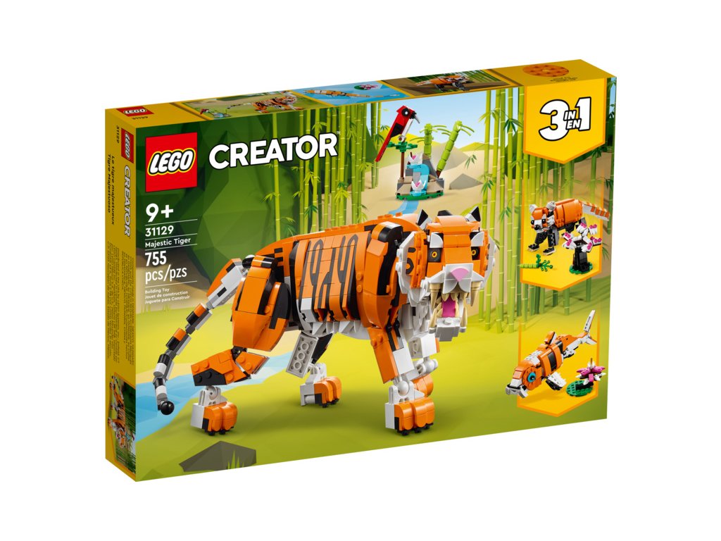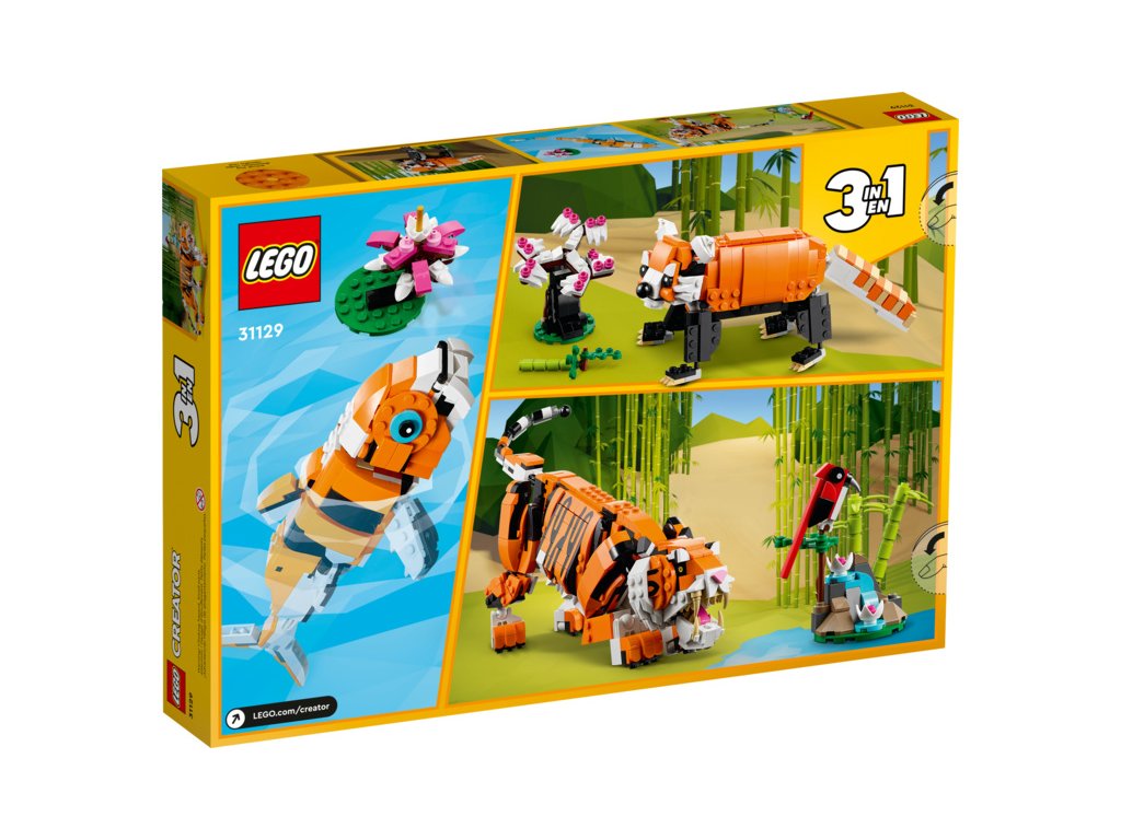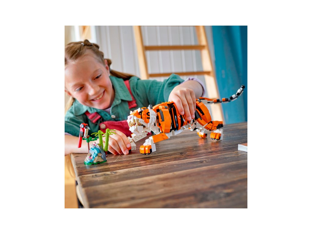 Se stavebnicí Majestátní tygr čeká milovníky kostek LEGO® množství dobrodružství s modely tygra, pandy a kapra koi. Stavebnice z řady 3 v 1 přináší dětem nejméně 3 různé stavitelské a herní zážitky.
