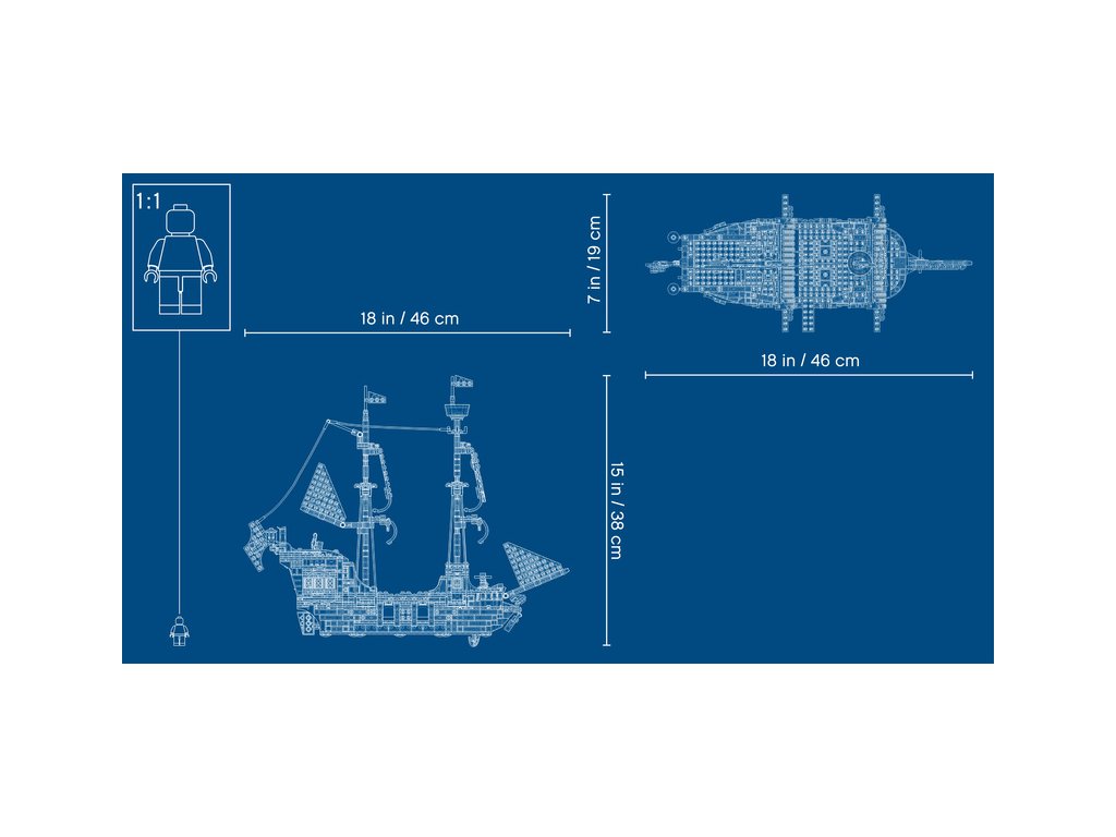 - Dálavy moří volají! Model pirátské lodi měří přes 37 cm na výšku, 46 cm na délku a 19 cm na šířku a ukrývá spoustu propracovaných detailů – ideální pro hraní v jednom nebo s partou kamarádů.