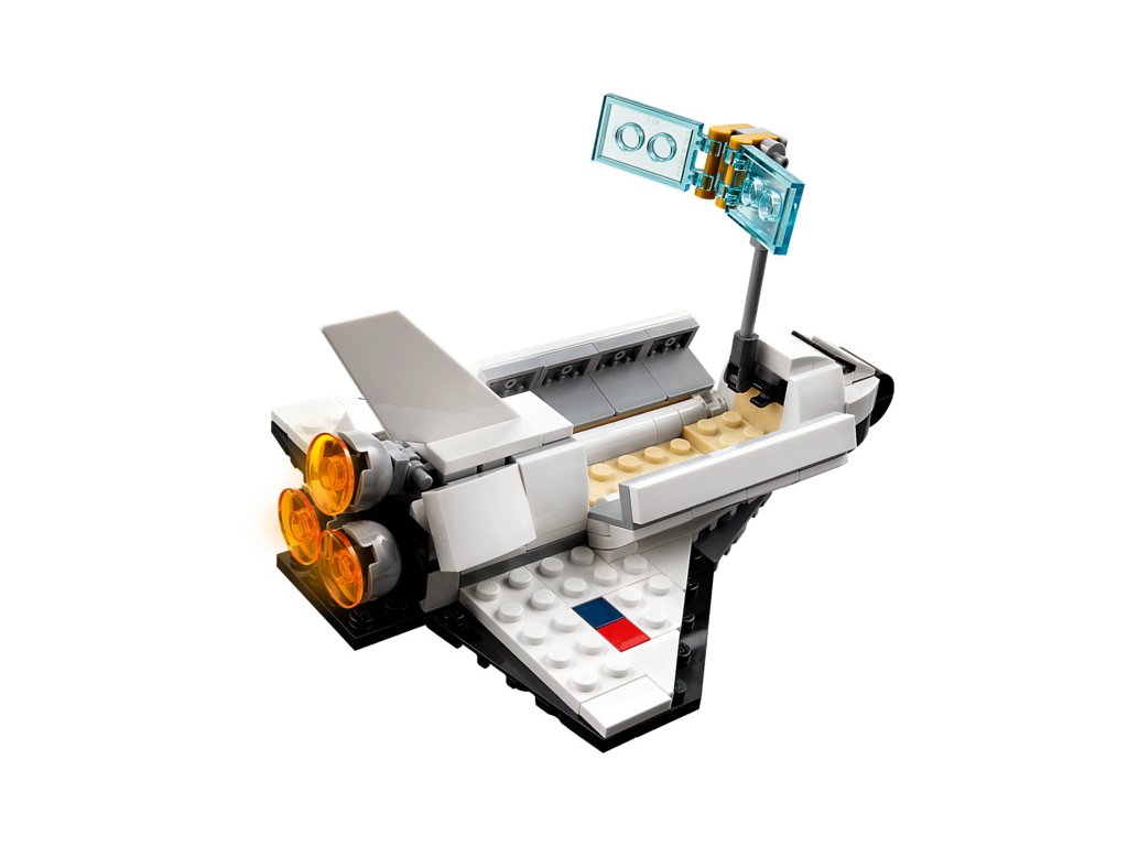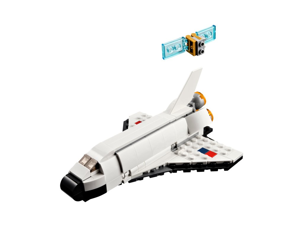 Vesmírní dobrodruzi si s raketoplánem od LEGO® Creator 3 v 1 užijí vzrušující dobrodružství. Mohou se těšit na model raketoplánu s otevíracím poklopem, který ukrývá vysouvací satelit.