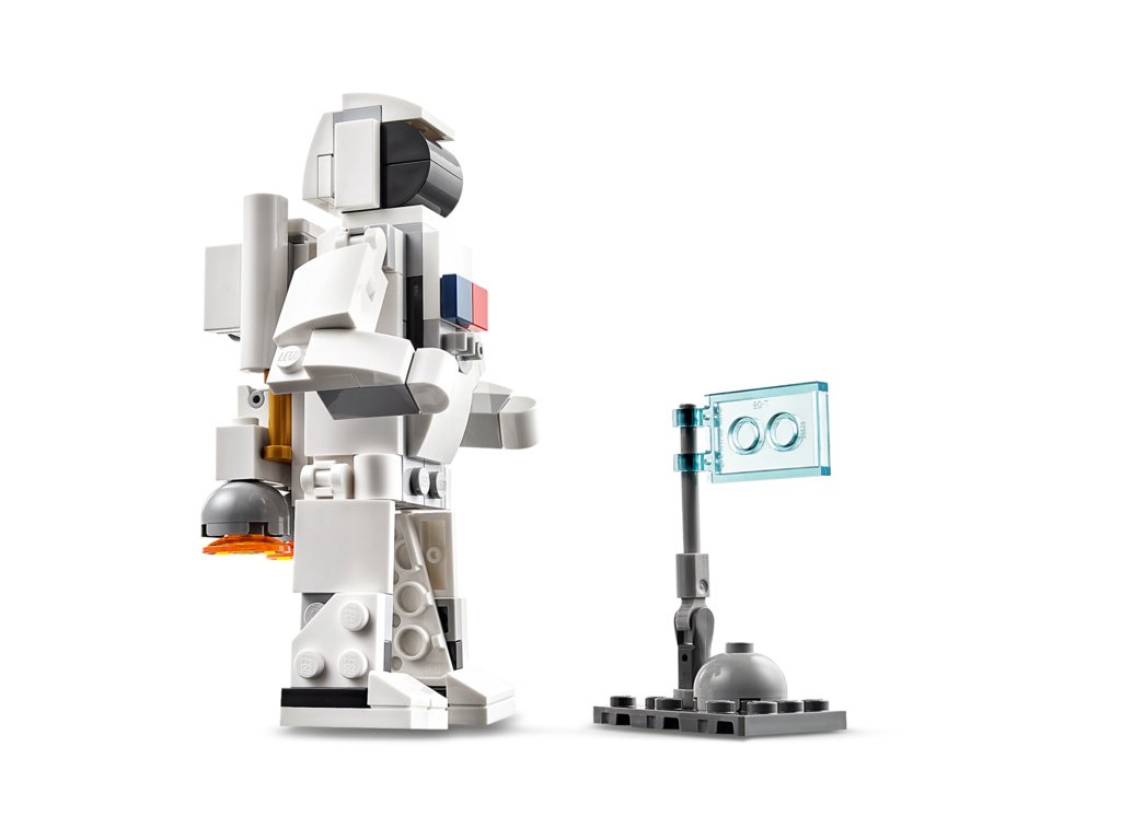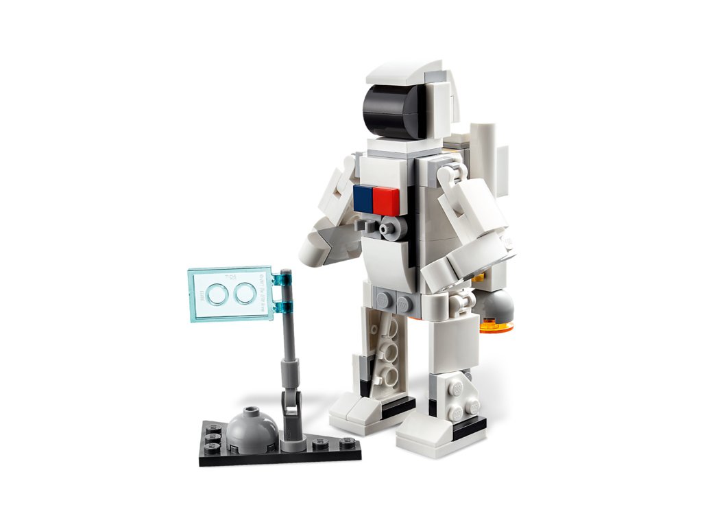 V této stavebnici 3 v 1 čekají na milovníky vesmíru 3 různá stavitelská a herní dobrodružství. Mohou si postavit raketoplán a pak jej přestavět na pohyblivou figurku astronauta s jetpackem a vlajkou nebo na úžasnou vesmírnou loď.