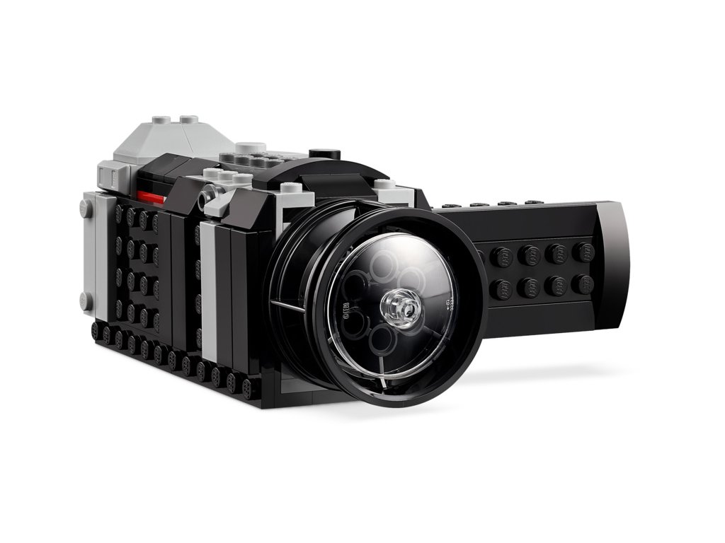- Stavějte a hrajte si – Tato stavebnice LEGO® se skládá z 261 dílků a součástí je sestavitelný model fotoaparátu, který měří přes 7 cm na výšku, 13 cm na šířku a 8 cm do hloubky