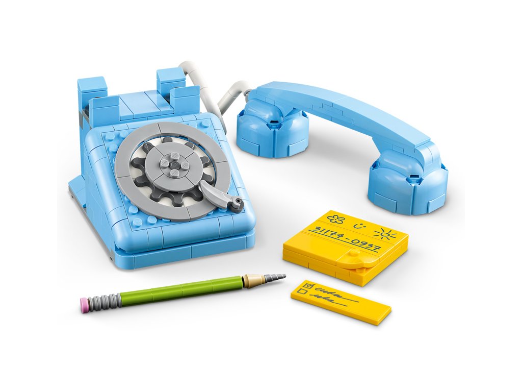 Dospělí i kreativní děti od 8 let se vrátí v čase se stylovou nostalgickou stavebnicí LEGO® Creator 3 v 1 (31174) Retro telefon. Model obsahuje parádní retro model telefonu z 60. let se zvedacím sluchátkem, flexibilním kabelem, rotační číselnicí afunkcí pružiny, která se aktivuje při zavěšení. Součástí retro stavebnice je také tužka z kostek a přizpůsobitelný samolepicí poznámkový blok se 3 dílky s různými vzkazy.