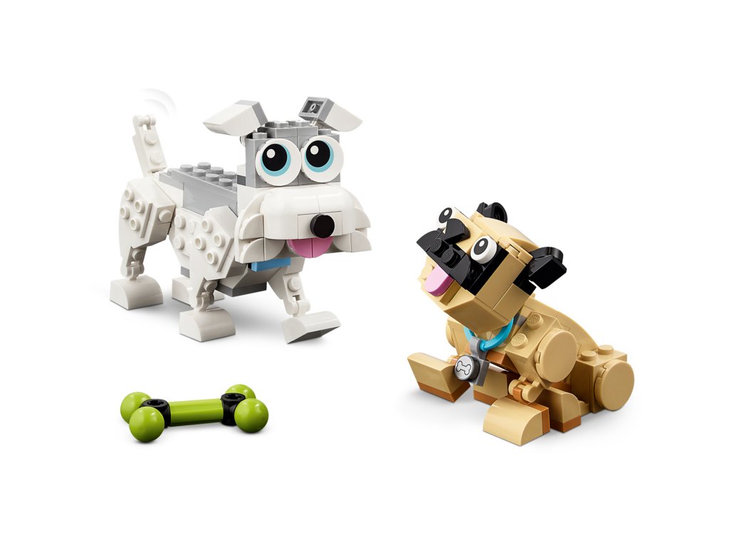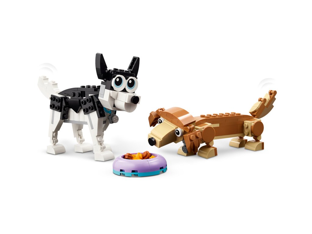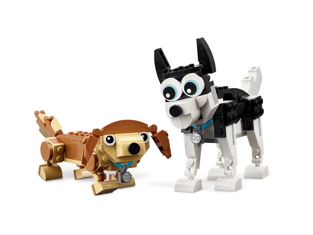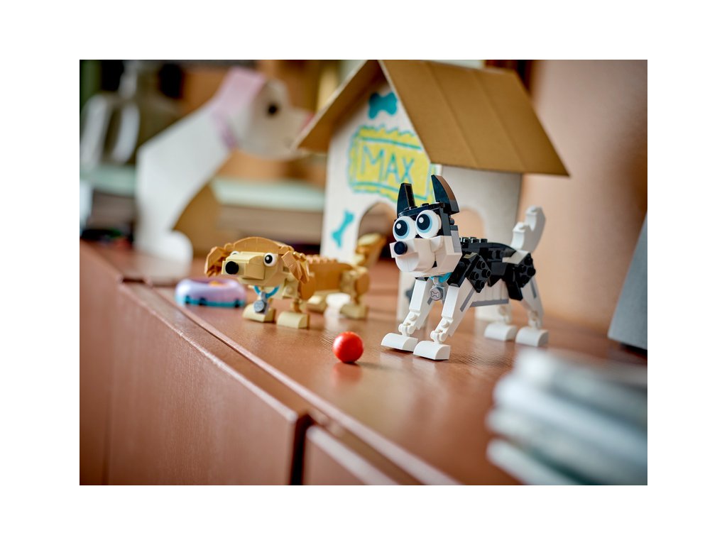 Milovníci psů si užijí legraci s rozkošnými chlupáči ze stavebnice LEGO® Creator 3 v 1 Roztomilí pejsci. Mohou se těšit na bígla, pudla a labradora s pohyblivými hlavami, ocasy a ušima, a navíc také na nápadité doplňky.
