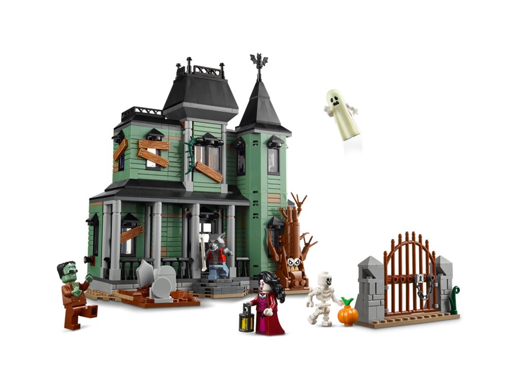 Kluci a holky od 9 let si můžou postavit hned 3 modely ze stejných kostek: interaktivní strašidelný dům, strašidelnou loď nebo strašidelný vlak s nástupištěm. Každá stavebnice obsahuje 5 minifigurek: vlkodlaka, upíra, ducha s pláštěm, který svítí ve tmě, Frankensteinovo monstrum a kostlivce.