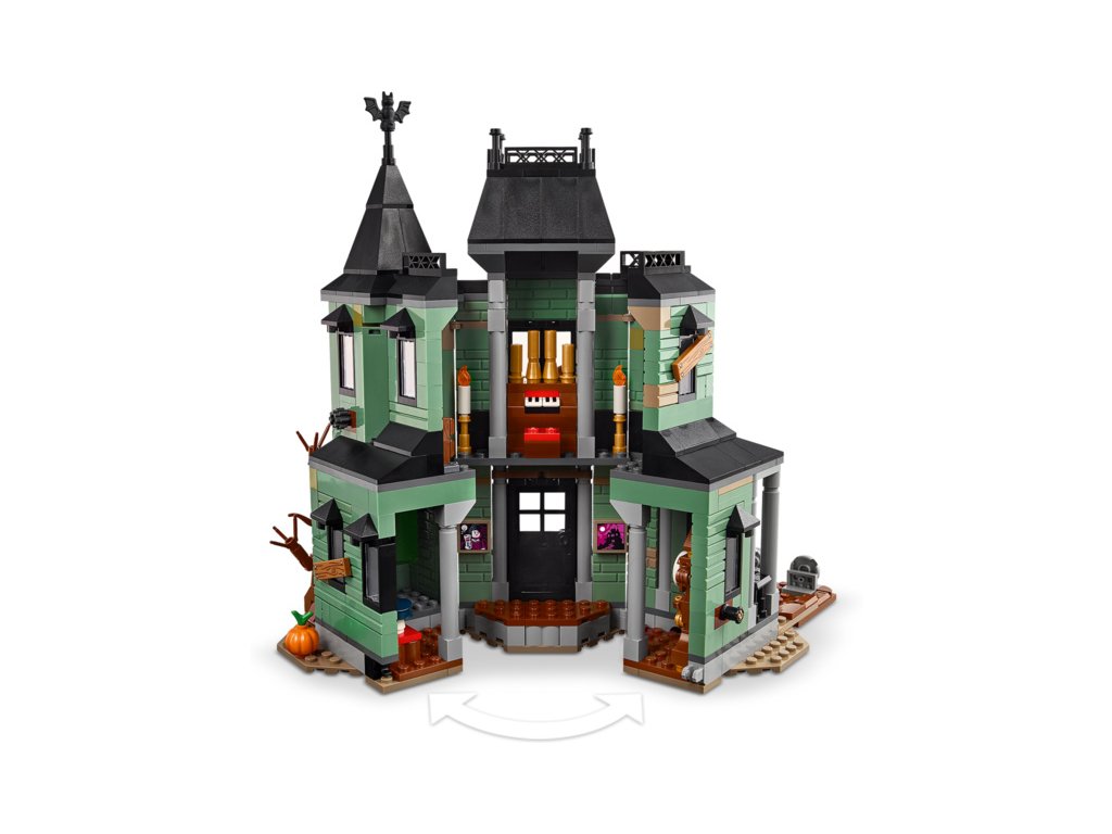 - Spousta zábavných doplňků – 2patrový strašidelný dům má otevírací přední bránu, hřbitov, děsivý strom, varhany, skrytého ducha, kterého odhalíte otočením kola, a otevírací zadní část pro ještě více herních možností