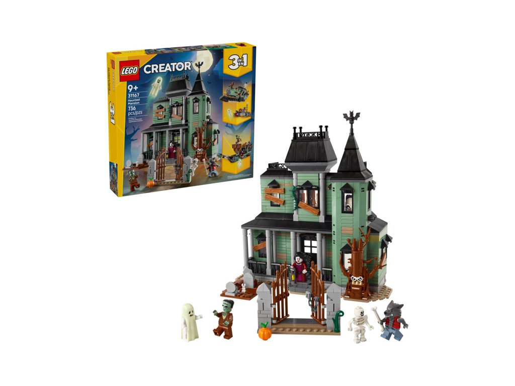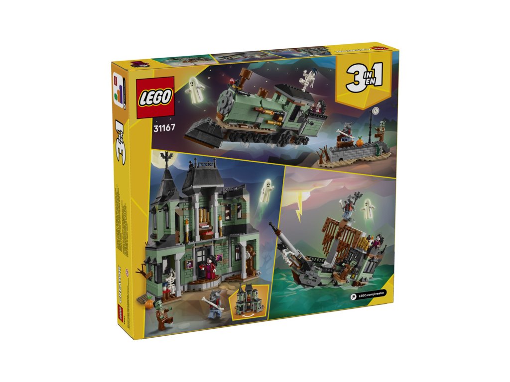 Vyprávějte strašidelné příběhy se stavebnicí LEGO® Creator 3 v 1 (31167) Strašidelný dům. Dvoupatrový strašidelný dům je nabitý úžasnými detaily a funkcemi, včetně otevírací přední brány, hřbitova, odpojitelného strašidelného stromu, varhan, skrytého ducha, kterého odhalíte otočením kola, a otevíracího zadního dílu pro ještě více herních možností.