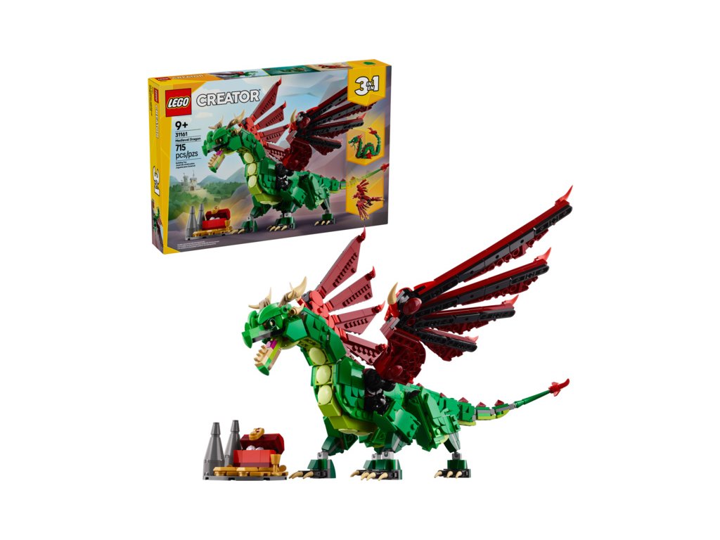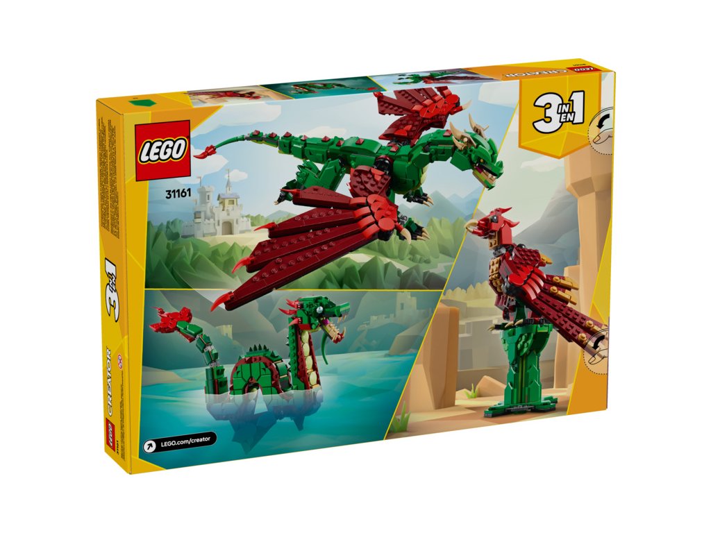 - 3 hračky se středověkými stvořeními v 1 krabici – Stavebnice LEGO® Creator 3 v 1 Středověký drak umožňuje klukům a holkám ve věku od 9 let stavět a přestavovat 3 různá fantasy zvířátka ze stejných kostek
