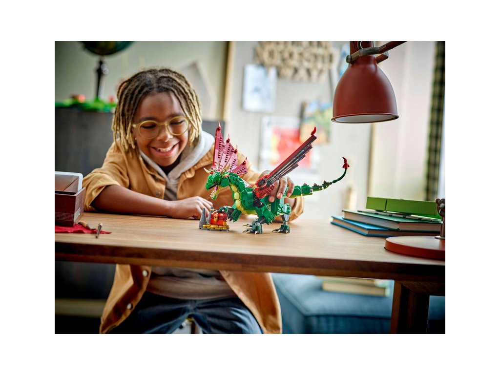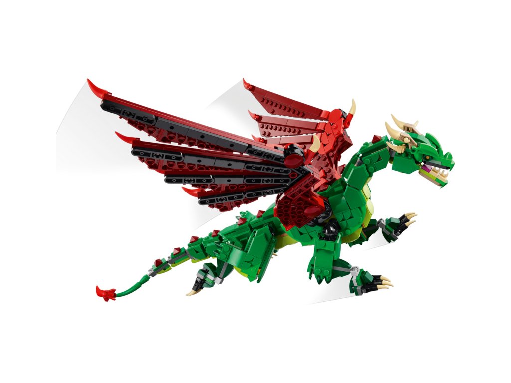 Stavebnice LEGO® Creator 3 v 1 Středověký drak umožňuje klukům a holkám ve věku od 9 let stavět a přestavovat 3 různá fantasy zvířátka ze stejných kostek.