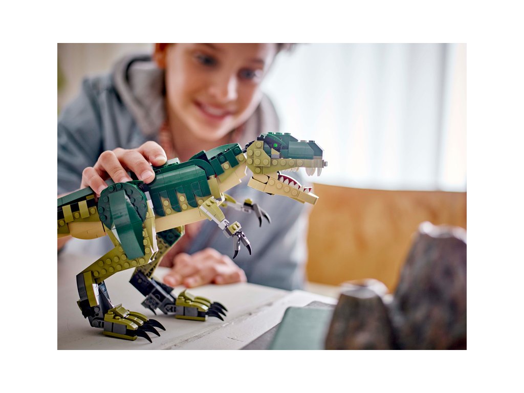 - 3 dinosauři v 1 stavebnici – Se stavebnicí LEGO® Creator 3 v 1 T-rex se děti od 9 let ponoří do stavění a přestavování 3 modelů zvířat z jedné sady kostek