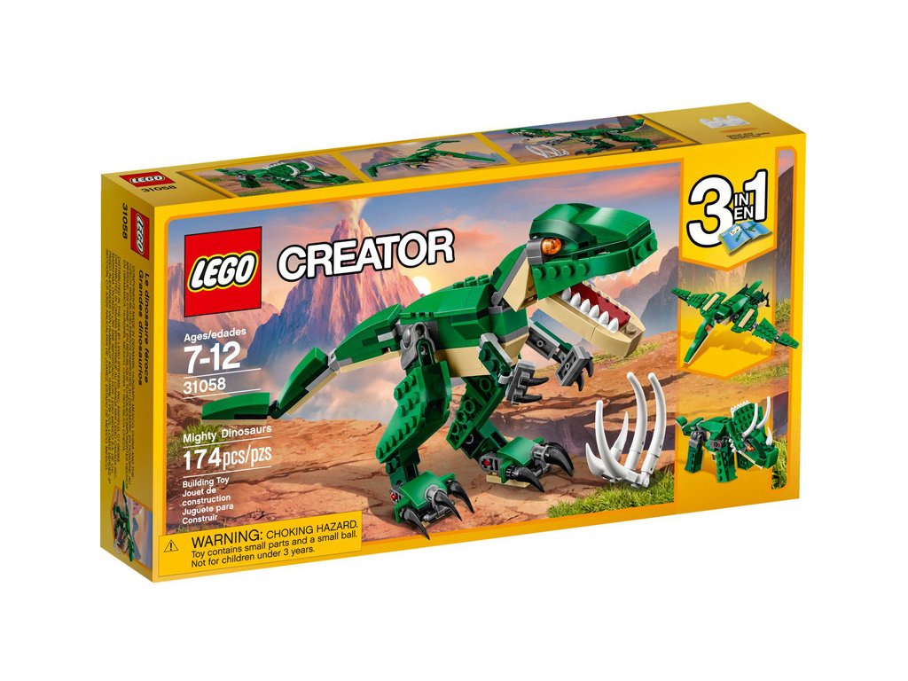 LEGO Creator - Úžasný dinosaurus 31058 je kreativní tvořivost plná skvělých dobrodružství burácivého řevu s dinosaury. Sada je 3 v 1 a má 174 kostek.
