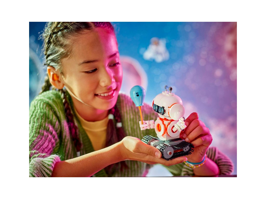 Kluci a holky od 8 let si přehrají příběhy z hvězd s vědeckou stavebnicí LEGO® Creator 3 v 1 Vesmírný robot. Lze postavit vesmírného robota, psa, nebo raketu.