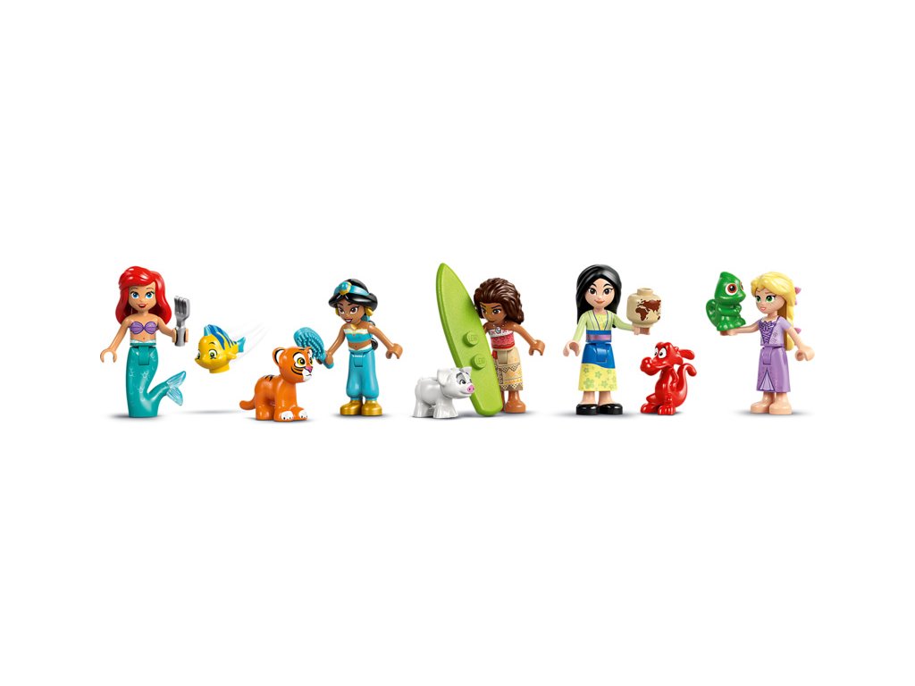 - Co najdete uvnitř? – Tato stavebnice s princeznami obsahuje sestavitelný hrad s několika místnostmi, 5 minipanenek LEGO® ǀ Disney, 5 zvířecích postav LEGO ǀ Disney a spoustu dalšího