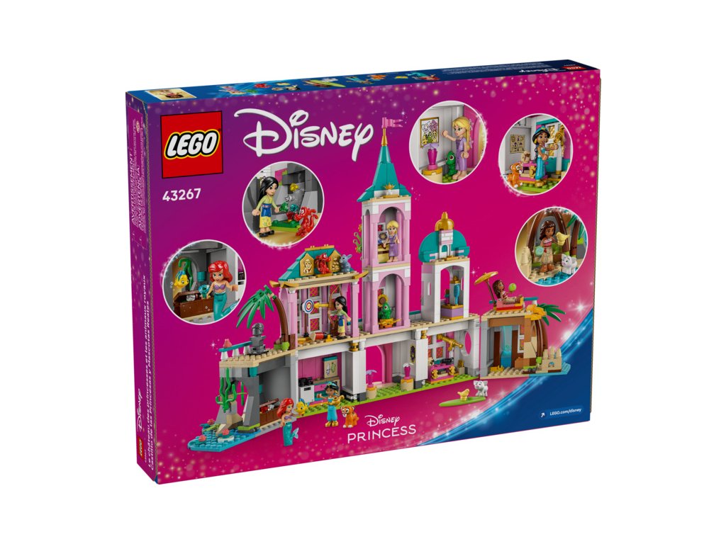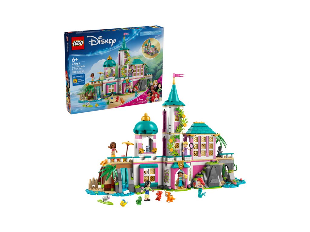Děti a fanoušci studia Disney objeví kouzelný svět se stavebnicí LEGO® ǀ Disney (43267) Hrad princezen a královští domácí mazlíčci. Tento hrad pro kluky a holky od 6 let obsahuje pokoj pro každou princeznu a poslouží jako krásný dárek. Hrad můžete vystavit zavřený a najdete v něm spoustu doplňků a funkcí, včetně luku, tunelu s vodopádem, odnímatelného nábytku a spoustu dalších. Stavebnice obsahuje 5 minipanenek LEGO ǀ Disney: Ariel, Lociku, Mulan, Jasmínu a Vaianu. Nechybí také 5 zvířecích postav LEGO ǀ Disney: Šupinka, Pascal, Rádža, Pua a vůbec poprvé také Mushu.