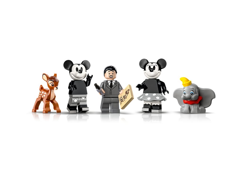 - Známé postavičky – Ve stavebnici nechybí 3 minifigurky LEGO® ǀ Disney: Myšák Mickey, Myška Minnie a Walt Disney, a figurky zvířat LEGO Bambi a Dumbo