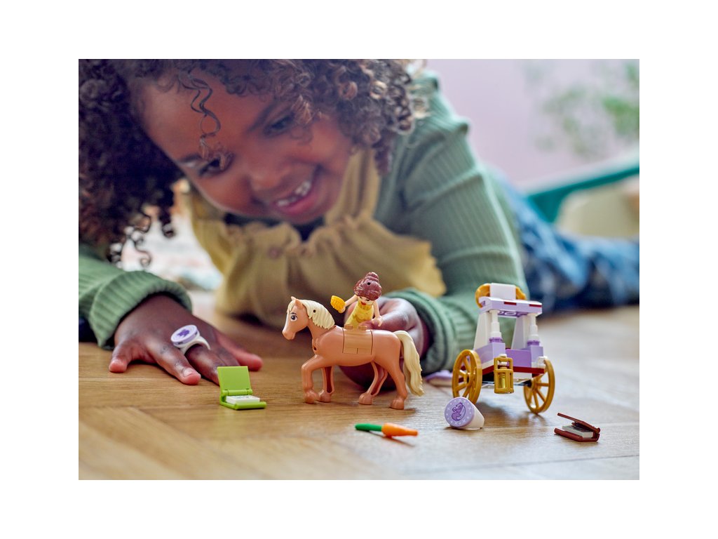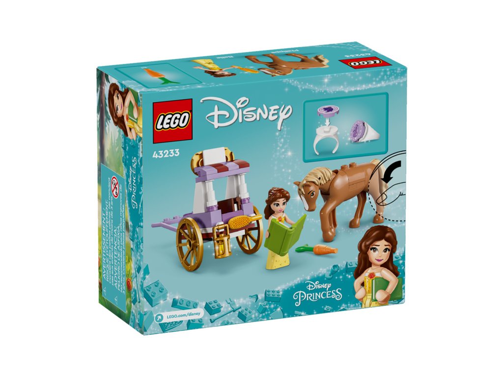 - Nekonečné hraní – Součástí stavebnice je kočár, minipanenka LEGO® ǀ Disney Princess Belly, figurka LEGO ǀ Disney koně a 2 sběratelské prsteny s ozdobami, které lze vyměňovat