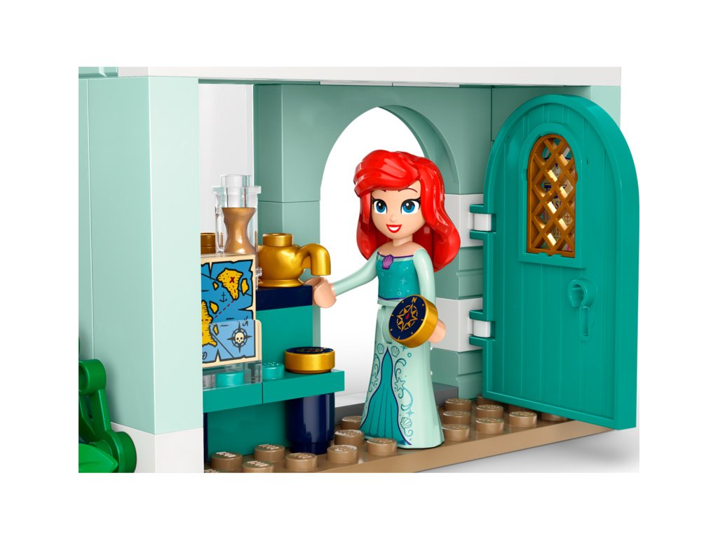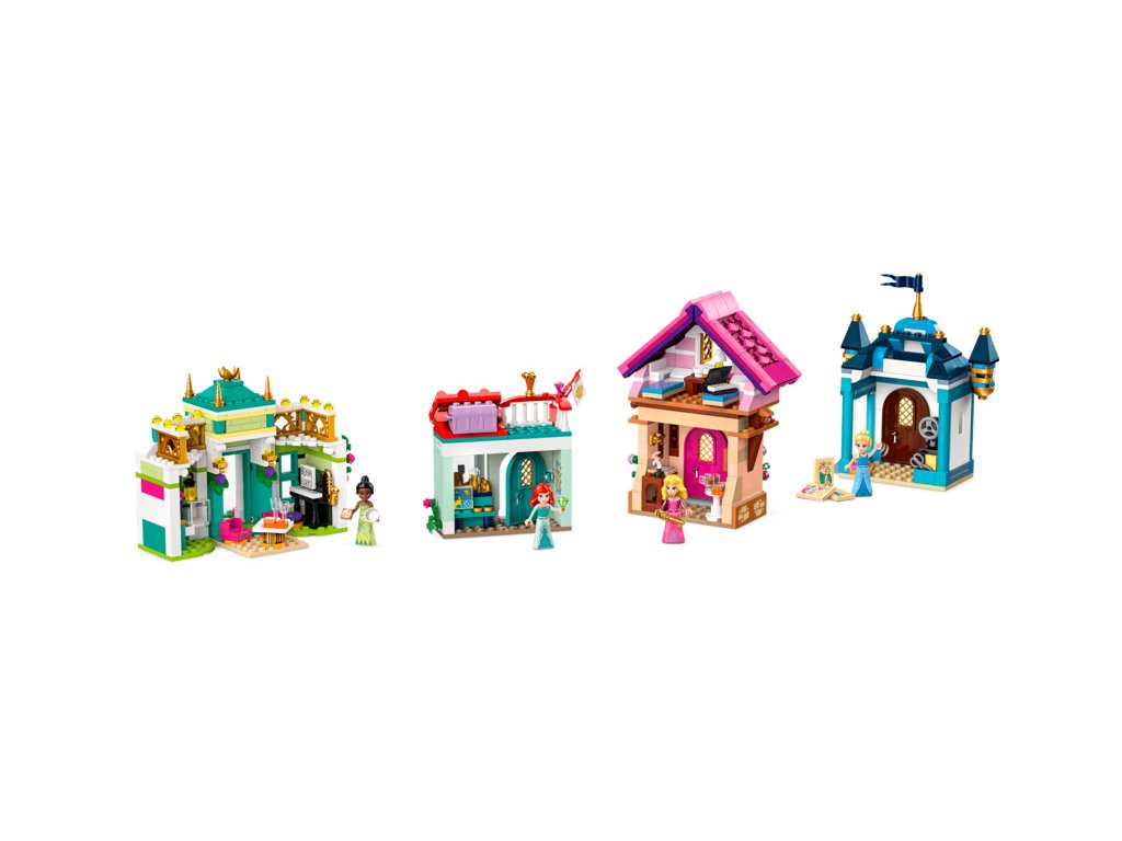 - Obrovská porce možností – Součástí jsou 4 budovy, menší prostor s květináčem, lavičkou a kašnou a minipanenky LEGO® ǀ Disney Ariel, Šípkové Růženky, Popelky a Tiany