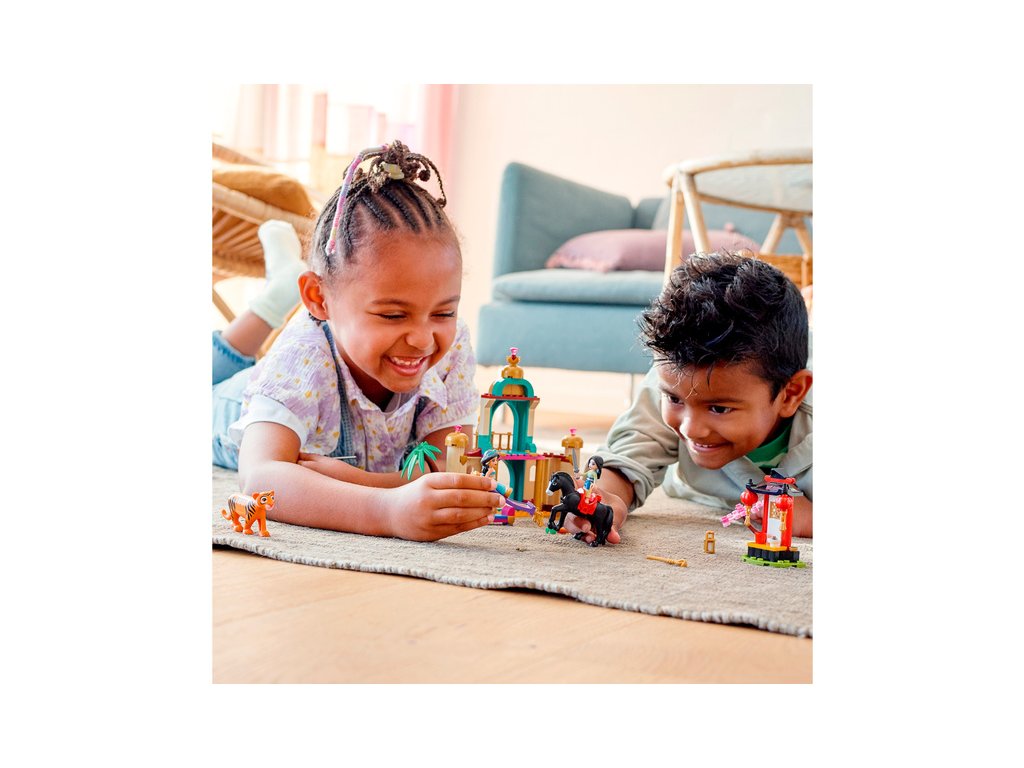 Děti od 5 let a fanoušci Disneyho Aladina a Mulan si stavebnici LEGO® ǀ Disney Dobrodružství Jasmíny a Mulan naprosto zamilují. Mohou se těšit na sestavitelný model paláce a chrámu, 2 panenky a 2 figurky LEGO zvířat.