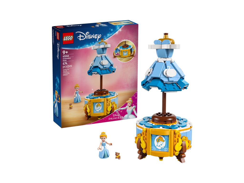 - Sestavitelná fantasy stavebnice – Fanoušci Disney princezen si postaví šaty a podstavec na vystavení, pak si užijí zábavu při hraní s postavičkami Popelky a Guse a šaty si nakonec vystaví