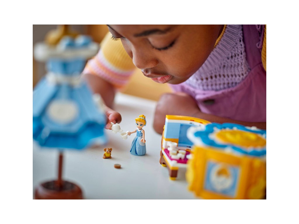 - Stavění na hraní – Součástí jsou sestavitelné šaty, stojan na šaty, podstavec na vystavení se 2 tajnými přihrádkami a prostorem pro minipanenku LEGO® ǀ Disney Popelky a zvířecího kamaráda LEGO ǀ Disney Guse