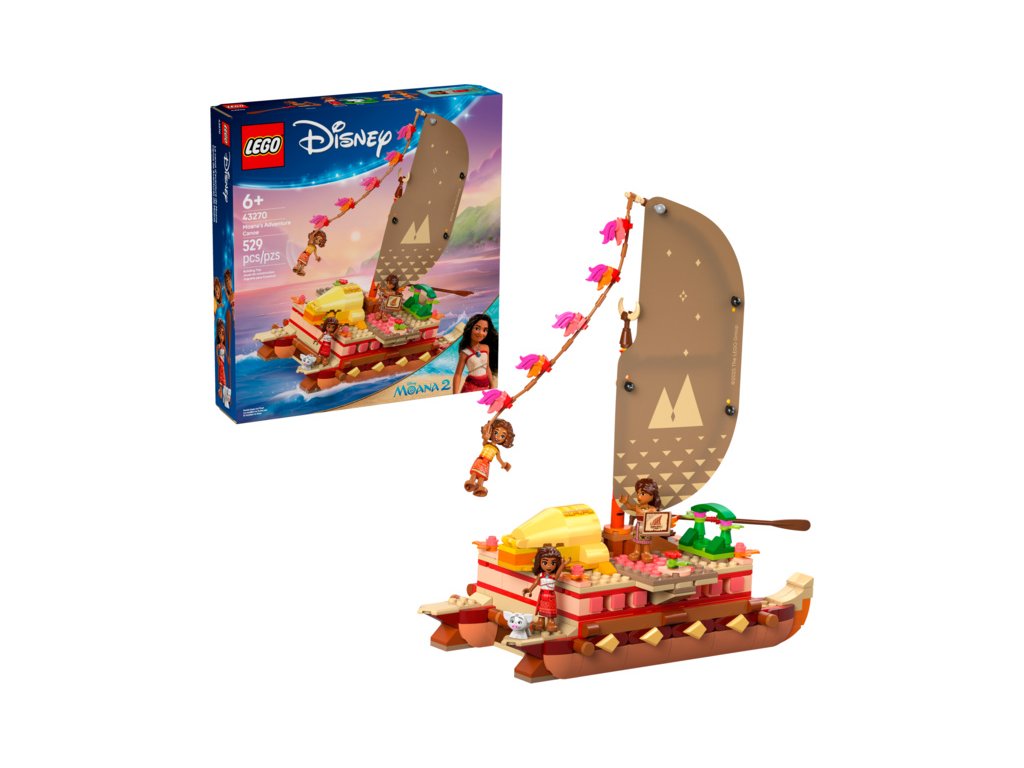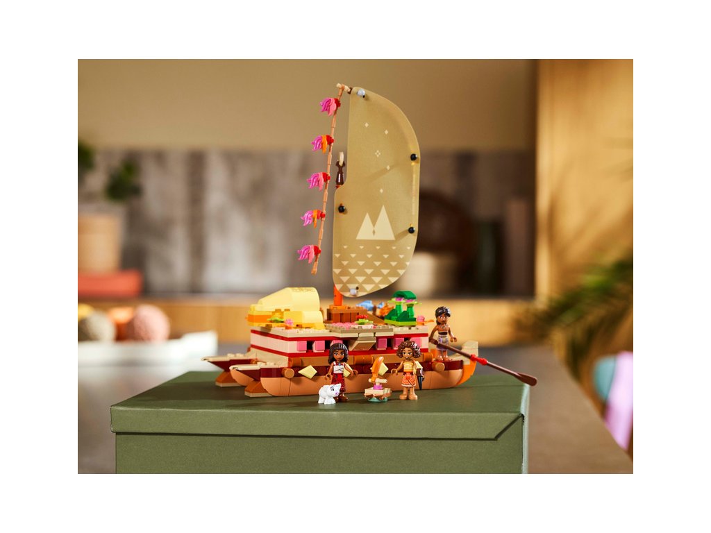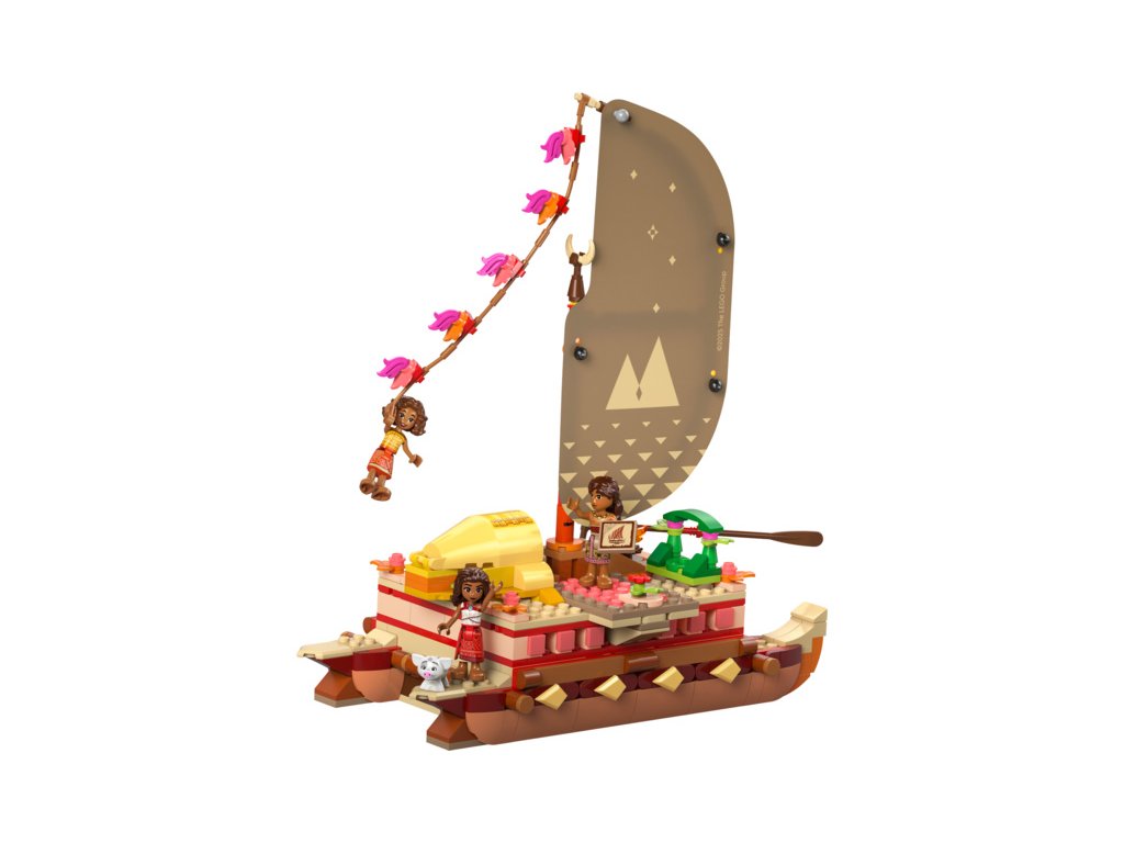 - Stavebnice Disney – Stavebnice kánoe s dvojitým trupem má vzorovanou textilní plachtu s lanem lei hulu, které vám pomůže určit směr větru, malý domeček pro prasátko Puu, přístřešek pro Vaianu a spoustu dalšího
