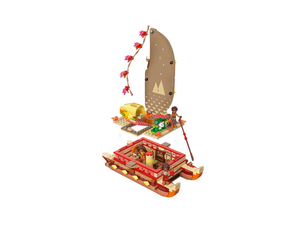 - Sestavitelný model – Obsahuje sestavitelnou kánoi s dvojitým trupem a textilní plachtou, odnímatelnou palubou, obývacím prostorem v podpalubí, 4 postavičkami LEGO® ǀ Disney z filmu a spoustu detailů