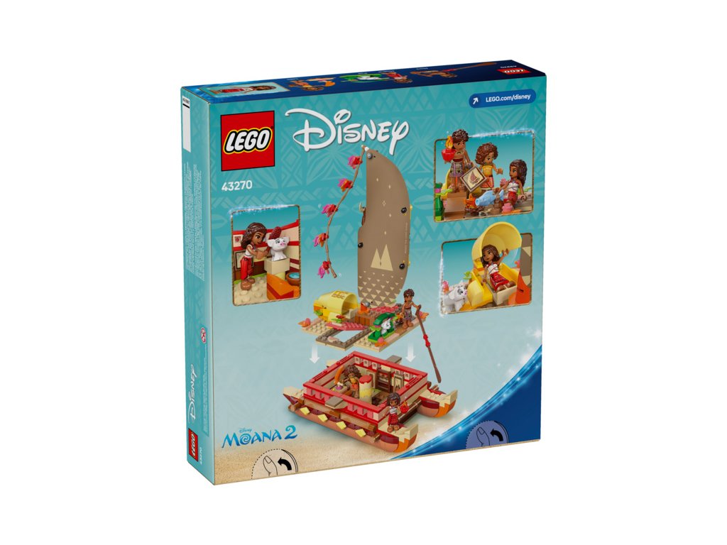 Potěšte mladé vypravěče od 6 let zábavnou stavebnicí LEGO® ǀ Disney - Vaiana a dobrodružství na kánoi. Tato fantastická stavebnice obsahuje kánoi s dvojitým trupem, potištěnou textilní plachtou a lanem lei hulu, které pomáhá určit, odkud vane vítr. Nechybí také odnímatelná horní paluba s obytným prostorem, malý táborák a spací prostory na palubě. Součástí je také spousta inspirativních prvků, minipanenky LEGO ǀ Disney – Vaiana, stavitelka lodí Loto a veslař Moni (který rád vypráví příběhy) a figurka LEGO ǀ Disney prasátka Puy.