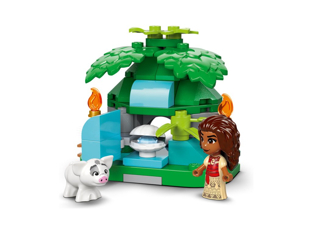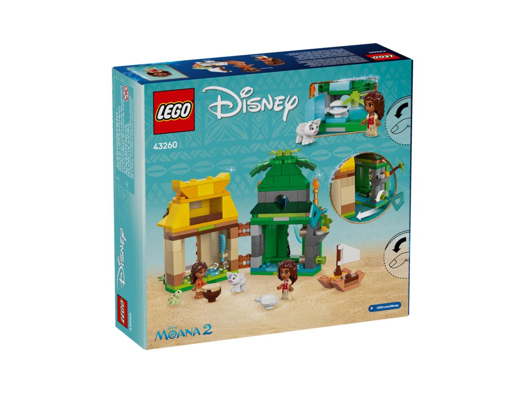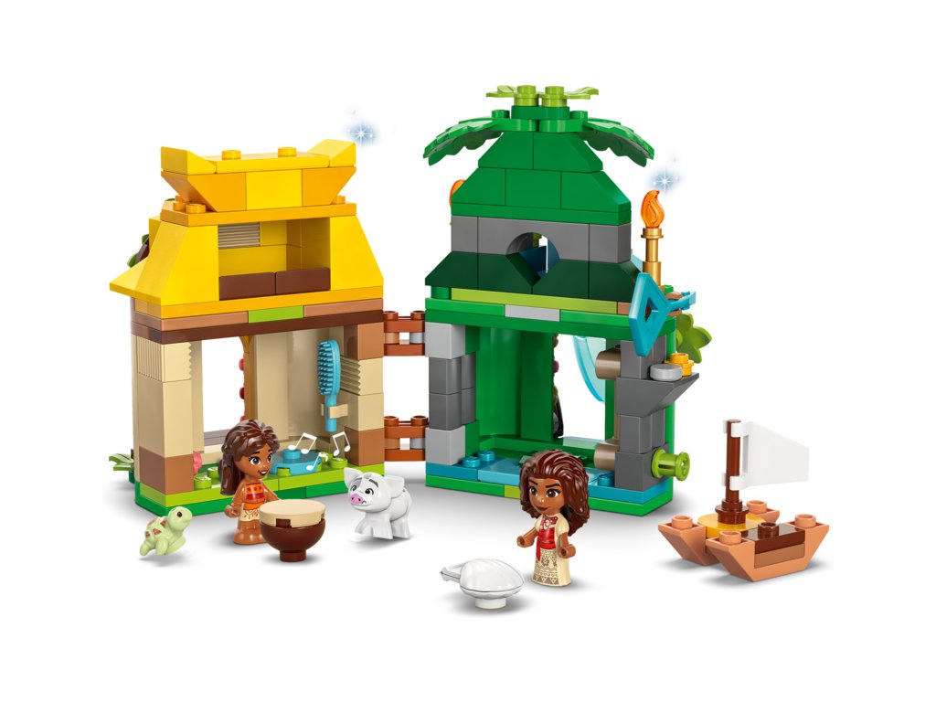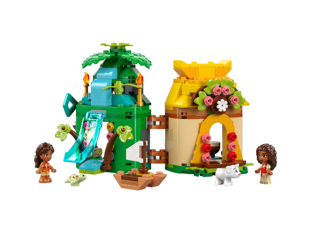 - Stavebnice LEGO® pro děti – Vystavte si stavebnici s prvky zasunutými dovnitř, zinscenujte své oblíbené okamžiky z filmu nebo vymyslete nekonečnou spoustu nových příběhů s Vaianou, její malou sestrou Simeou a prasátkem Puem od Disney
