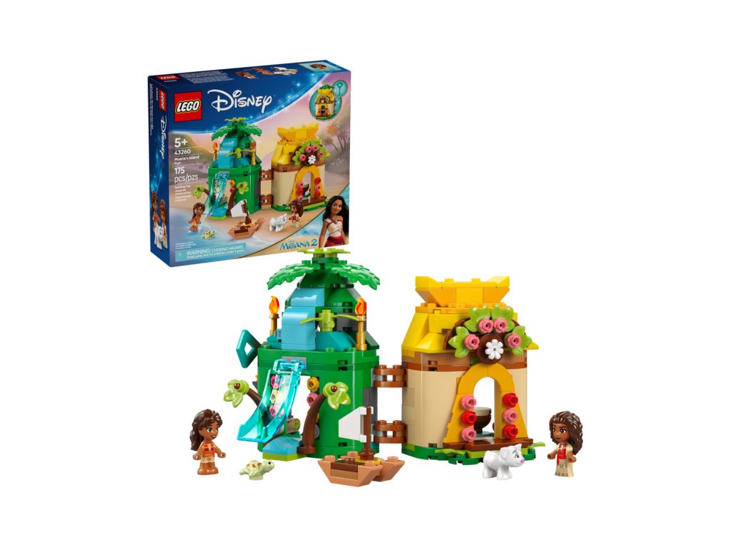 S fantasy stavebnicí LEGO® ǀ Disney (43260) Vaiana a zábava na ostrově se fanoušci Disney hrdinky Vaiany od 5 let můžou těšit na fantastická dobrodružství. Tento sestavitelný oboustranný model mikrosvěta je inspirovaný filmem Odvážná Vaiana 2. Malá stavebnice uvnitř ukrývá obrovský svět. Na ostrově najdete vodopádovou skluzavku se skrytým vchodem a v domě zase pokoje pro mikropanenky LEGO ǀ Disney Vaiany a její malé sestry Simey a místo pro prasátko Puu. Součástí je malá loďka a poutavé inspirativní doplňky. Ostrov lze uzamknout klíčem, takže se skvěle hodí na přenosné hraní na cestách.