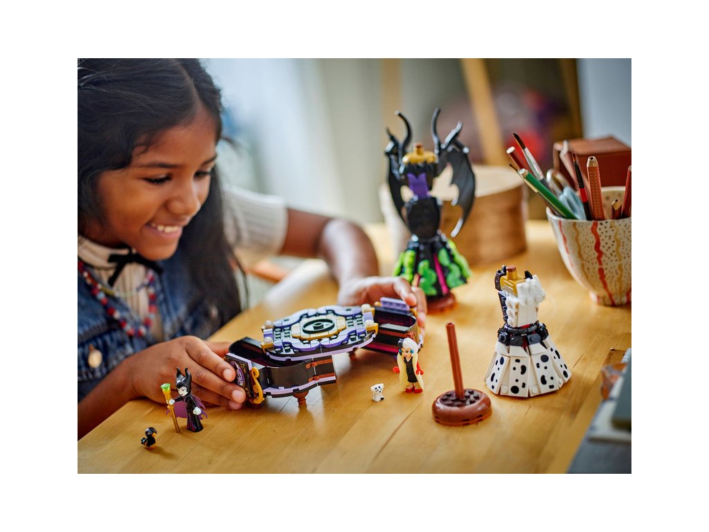 Děti i dospělí fanoušci si zamilují tyto propracované šaty a užijí si společné chvilky při stavění zábavné stavebnice s motivem dvou slavných disneyovských záporaček. Stavitelé se můžou těšit na nenáročný a intuitivní stavitelský zážitek s aplikací LEGO Builder. V ní si lze přibližovat a otáčet modely ve 3D, ukládat stavebnice a sledovat postup.