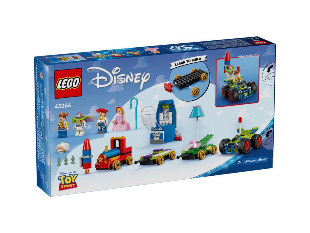 - Stavebnice na motivy filmu Příběh hraček od studia Disney a Pixar – S touto stavebnicí LEGO® fanoušci zapojí představivost a uspořádají krasojízdu s oblíbenými postavami a oslaví tak 30 let filmu Příběh hraček od studia Disney a Pixar