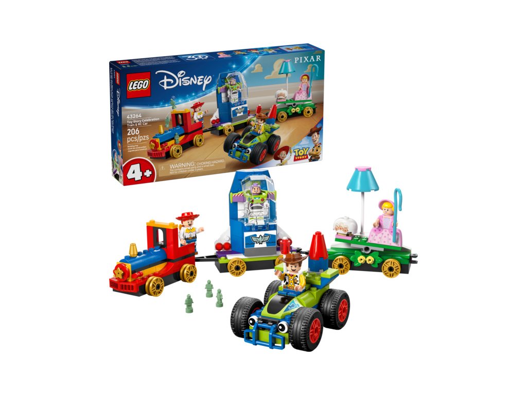 Děti od 4 let, které milují vozidla a vlaky, najdou ve stavebnici LEGO® ǀ Disney a Pixar (43264) Slavnostní vláček a Autíčko z Příběhu hraček všechno, co mají rády! Naučí se stavět při oslavě 30. výročí filmového hitu Příběh hraček od studií Disney a Pixar s lokomotivou inspirovanou westerny, 2 alegorickými vagóny a Autíčkem. Na vozech najdete houpačku a vesmírnou loď. Stavebnice obsahuje 4 postavy LEGO ǀ Disney a Pixar: Woodyho, Jessie, Pastýřku a Buzze Rakeťáka.