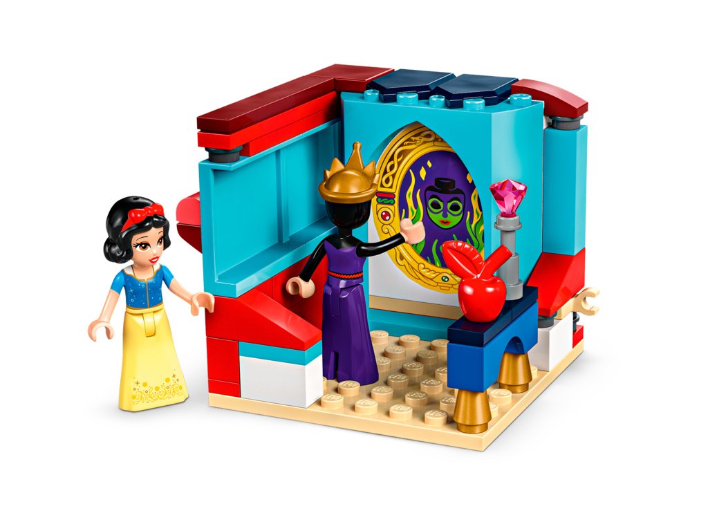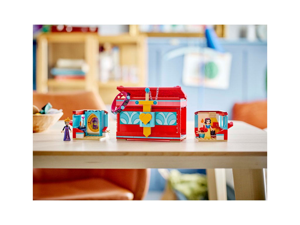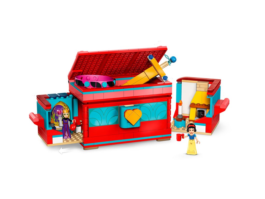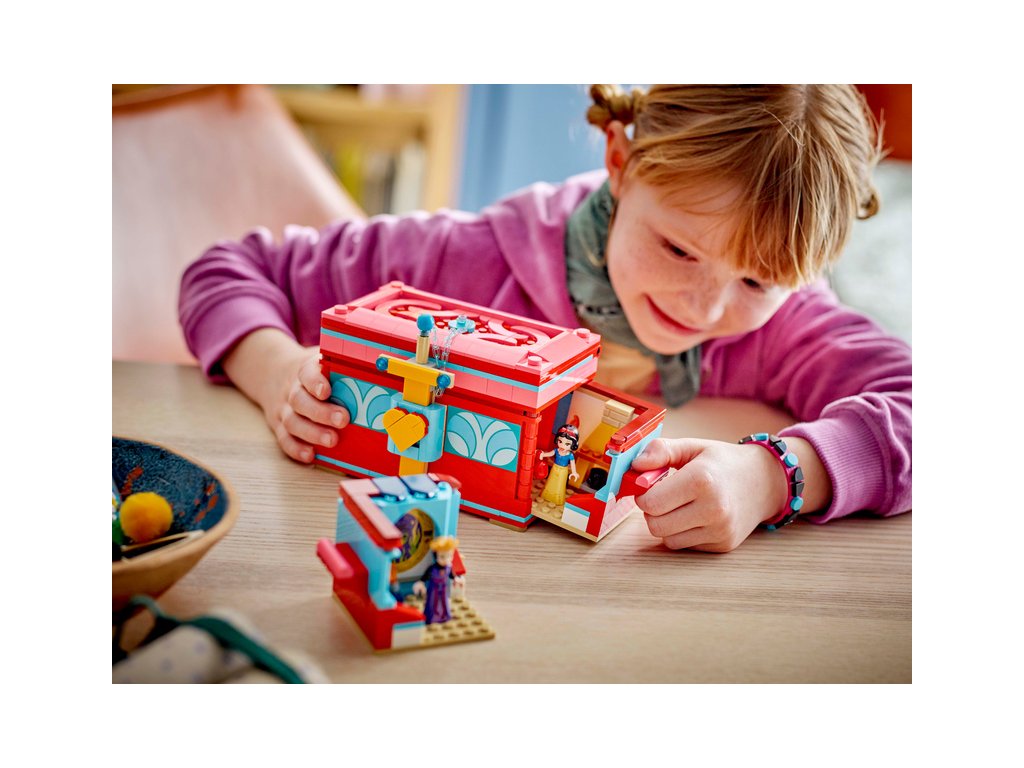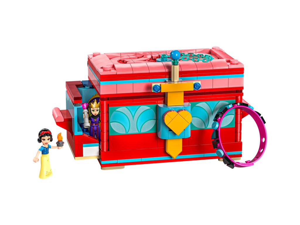 - Šperkovnice – Součástí je sestavitelná šperkovnice s uzamykatelným víkem, náramek, spousta zdobicích prvků a minipanenky LEGO® ǀ Disney Sněhurky a Zlé královny