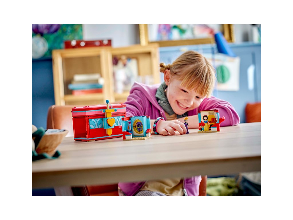 Tato stavebnice Disney dětem dodá sebevědomí a povzbudí je ke kreativitě při hraní s tajnými komnatami a při zdobení náramku. Model lze kombinovat s dalšími stavebnicemi z řady LEGO ǀ Disney (prodávají se samostatně). Děti i dospělí fanoušci si propracovanou stavebnici zamilují a vychutnají si společné stavění jedné z nejnovějších hraček na motivy filmů z dílny studia Disney.