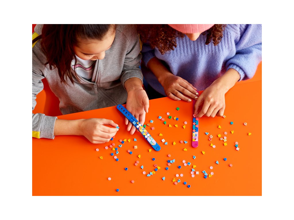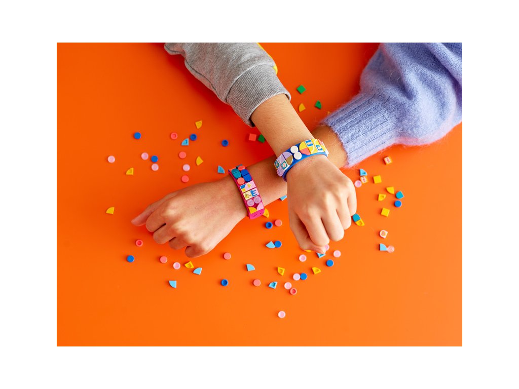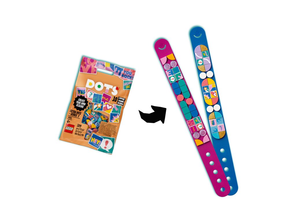 - Stačí otevřít balíček a můžete se pustit do kreativního stavění! Tato sada, která nabízí spoustu nových barev a půvabných zdobených dílků, dětem přináší extra porci tvořivé zábavy. Těmito destičkami lze vylepšit jakoukoli jinou sadu na výrobu doplňků do pokoje nebo náramků z řady DOTS.