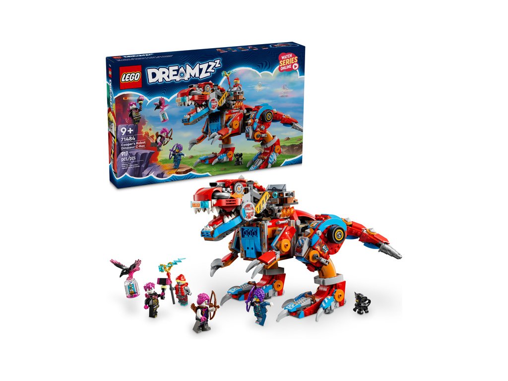 Popusťte uzdu fantazii se stavebnicí LEGO® DREAMZzz™ (71484) Cooperův robotický dinosaurus C-Rex pro děti od 9 let, kterou lze sestavit jako dinosaura T-rexe. Stavebnice na motivy napínavého televizního seriálu dětem přináší hned 2 způsoby sestavení parádního modelu dinosaura.