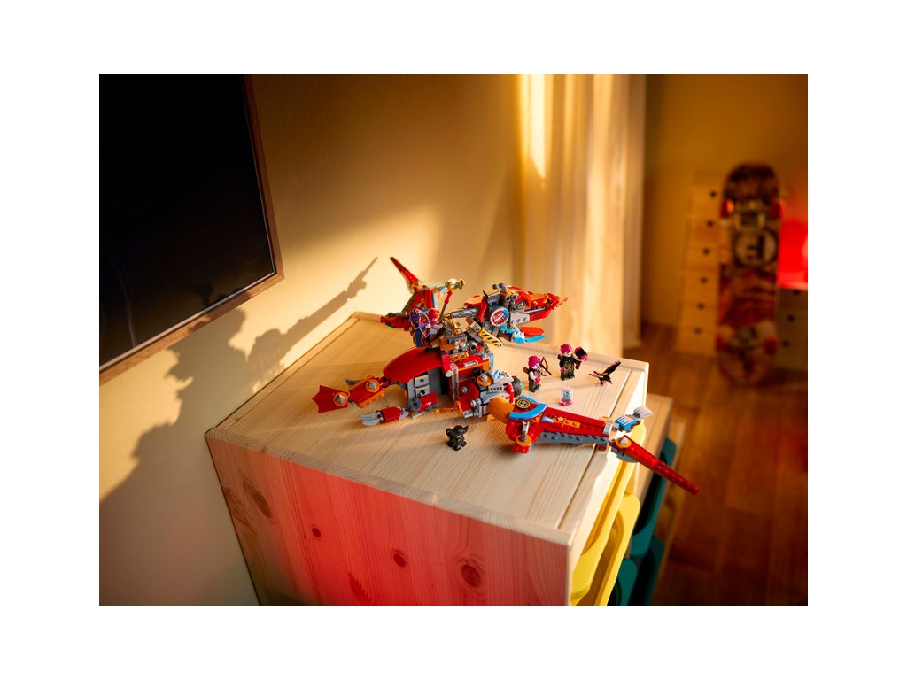 Padouši z nočních můr ukradli Sandmanovu věž a uvěznili ji ve sklenici snů! Zoey a Cooper ji musí získat zpět. Děti jim pomůžou tak, že promění Cooperovo vrakoviště z kostek LEGO v akční figurku T-rexe nebo pterodaktyla. S modely si děti užijí hodiny nápaditého hraní a oba dinosauři mají pohyblivou hlavu, cvakající čelisti, nebezpečný ocas a dvojité vystřelovače.