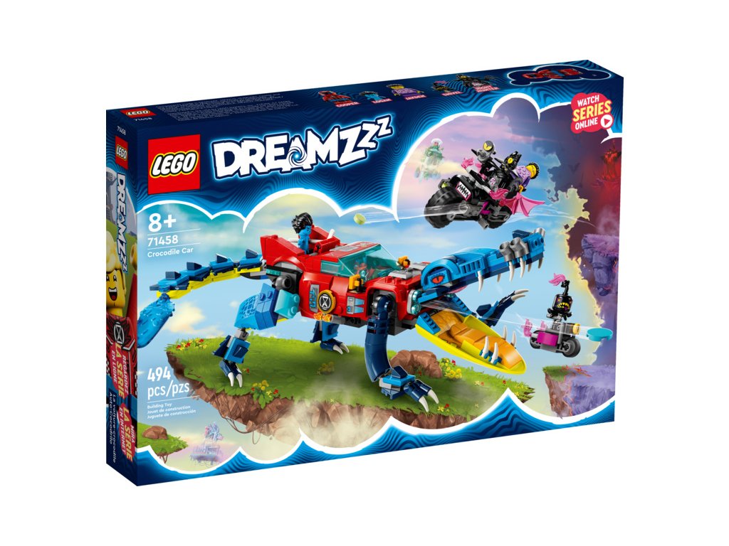Děti od 8 let se s touto sadou LEGO® DREAMZzz™ (71458) Krokodýlí auto vydají do Světa snů. V duchu televizního seriálu tu děti vytvoří parádní auto, které pomůže zachránit Jaydena před děsivým Nočním lovcem. 1 stavebnice, 2 varianty ke stavění Herní stavebnice obsahuje 2 varianty ke stavění a mnoho návodů vedených příběhem, které dětem dávají možnost zvolit si své dobrodružství a užít si dvojnásobnou dobu hraní. Mají na výběr mezi sestavením krokodýlího auta k boji proti nočním můrám a super rychlým terénním autem a mini loďkou k jejich pronásledování. V krokodýlí verzi má auto pohyblivé ruce a nohy a v přední mřížce je ukrytý vystřelovač disků, kterým děti vystřelují disky z krokodýlí tlamy. Terénní auto má otáčecí kola a sundávací střechu, abyste dovnitř mohli posadit minifigurku. Fantastické minifigurky Stavebnice obsahuje propracované minifigurky Coopera a Jaydena a navíc Nočního lovce, který je vybavený parádní motorkou a zlým pomocníkem.