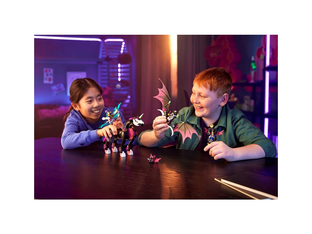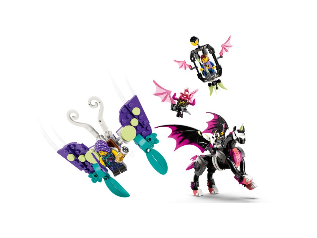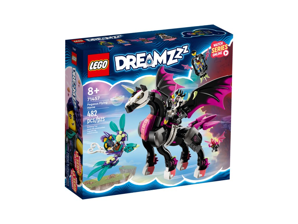 Tato stavebnice LEGO® DREAMZzz™ (71457) Létající kůň pegas vtáhne děti od 8 let přímo do akce ve Světě snů. Podobně jako v televizním seriálu se tu odehrává příběh Zoey a její záchranné mise za kamarádkou Novou, kterou unesla noční můra Susan na létajícím koni pegasovi. Návod na stavění vedený příběhem vtáhne děti do akce a podnítí jejich představivost při rozhodování o tom, co Zoey podnikne.