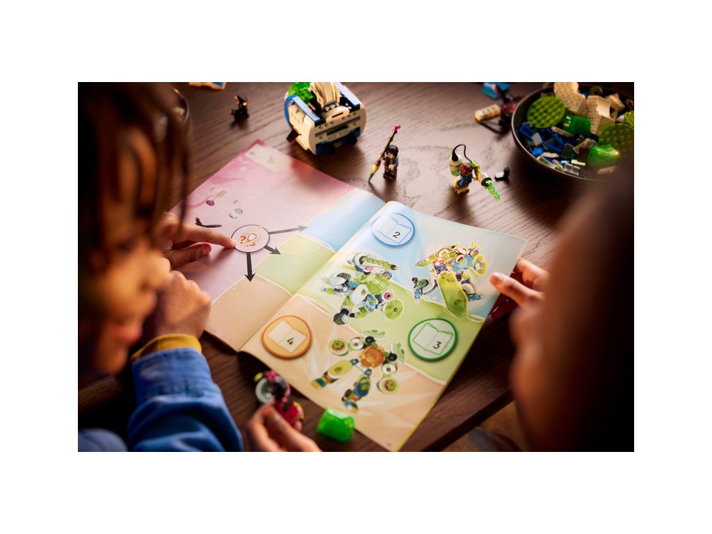 - Staňte se součástí akce – Stavebnice obsahuje návod na stavění vedený příběhem, který je také k dispozici v digitální verzi v aplikaci LEGO® Builder, kde děti mohu modely přibližovat a otáčet ve 3D během stavění