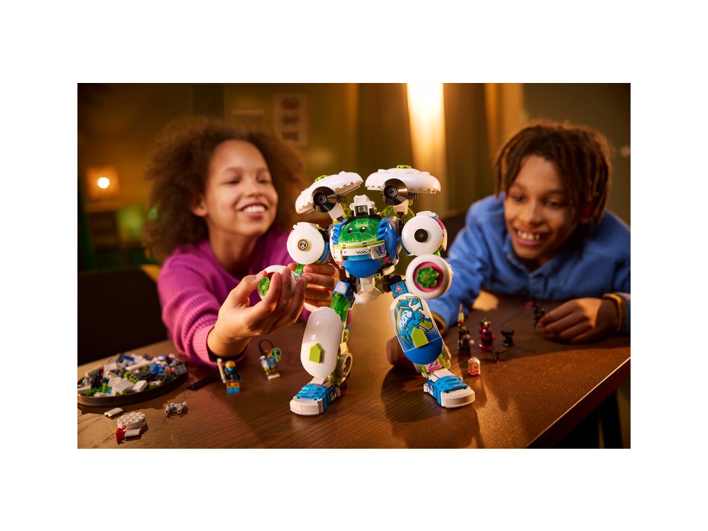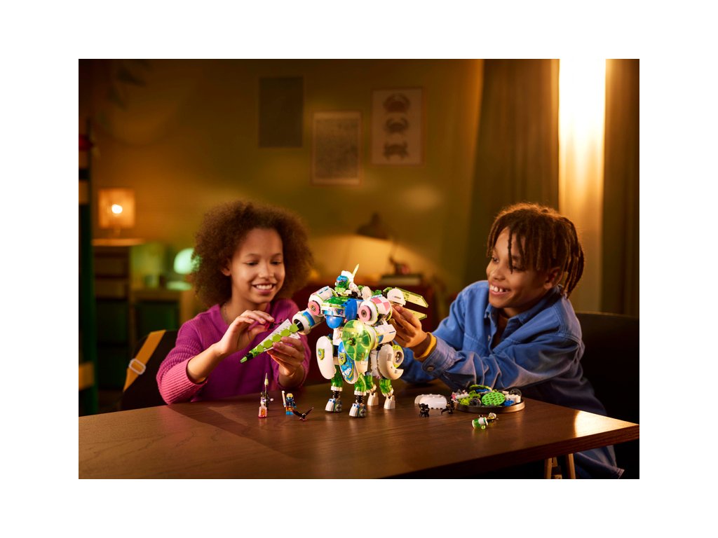 Stavebnici vdechují život 4 minifigurky LEGO DREAMZzz: Hrdinové Mateo a Logan a jejich temní dvojníci MadTea a Dogan. Nechybí ani figurky zlých přisluhovačů Sneaka a Snivela. Stavebnice robota podněcuje nápadité hraní a součástí je návod na stavění vedený příběhem, se kterým se děti pustí do dobrodružství a stanou se hrdiny Světa snů.