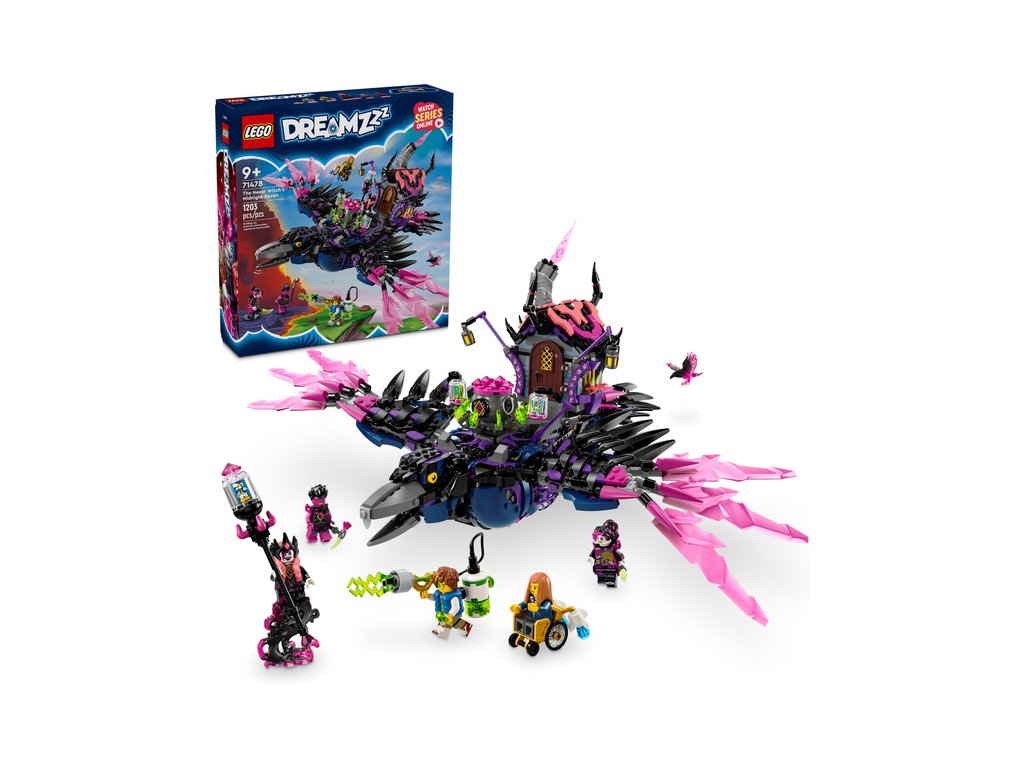 Vzlétněte na křídlech představivosti se stavebnicí LEGO® DREAMZzz™ (71478) Nikdyčarodějnice a její Půlnoční krkavec pro děti od 9 let. Tato stavebnice se zvířátky je inspirovaná napínavým televizním seriálem a kluci i holky si s ní postaví úžasného krkavce a model pak přestaví na 2 nové úchvatné verze.