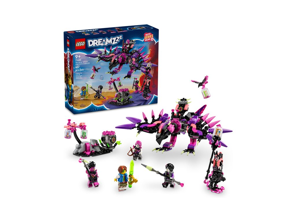 Popusťte uzdu své fantazii s kouzelnou stavebnicí LEGO® DREAMZzz™ Nikdyčarodějnice a její stvoření z noční můry pro děti od 9 let. Tato stavebnice je inspirovaná televizním seriálem.