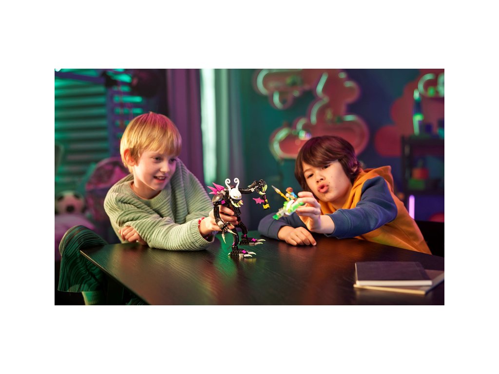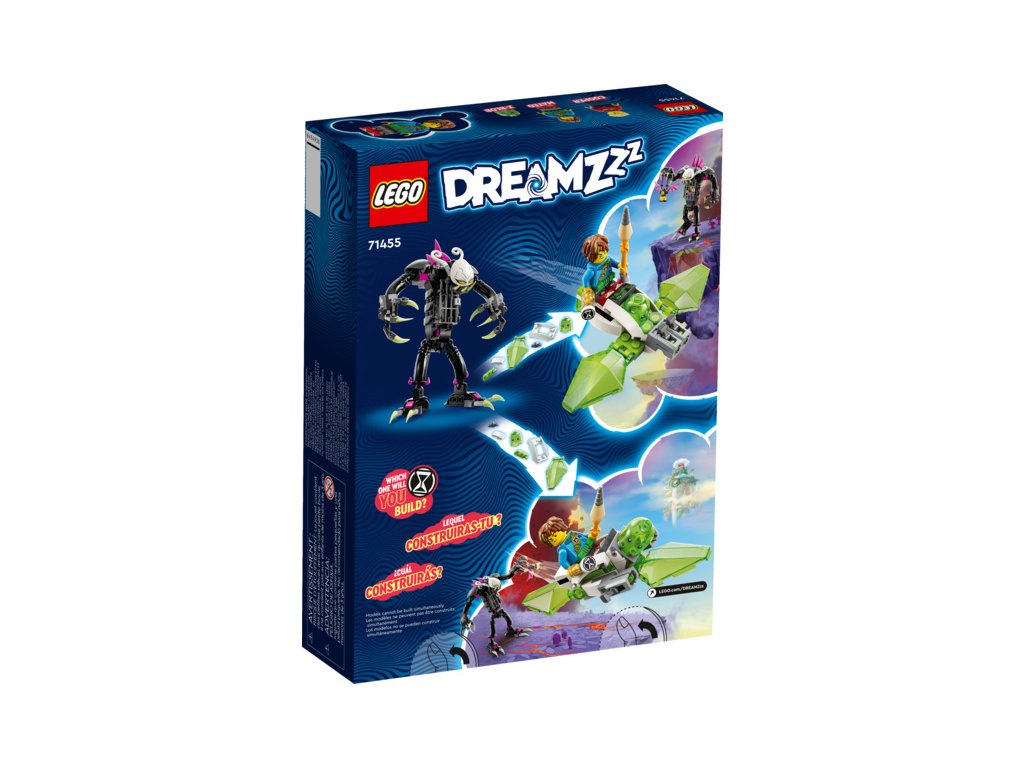 Děti od 7 let se ve stavebnici LEGO® DREAMZzz™ (71455) Šklebostráž utkají s děsivou noční můrou. Nejdříve děti sestaví zákeřného Šklebostráže. Poté, podobně jako v akčním příběhu z televizního seriálu DREAMZzz, pomohou Mateovi a Z-Flekovi zachránit kamaráda Coopera ze zlých spárů Šklebostráže, který je se svou kořistí na cestě za Králem nočních můr.