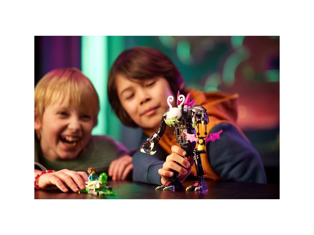 V této stavebnici LEGO® DREAMZzz™ Šklebostráž, mají děti příležitost pomoci Mateovi a Z-Flekovi zachránit Coopera ze spárů Šklebostráže, který ho bere zpátky ke Králi nočních můr.